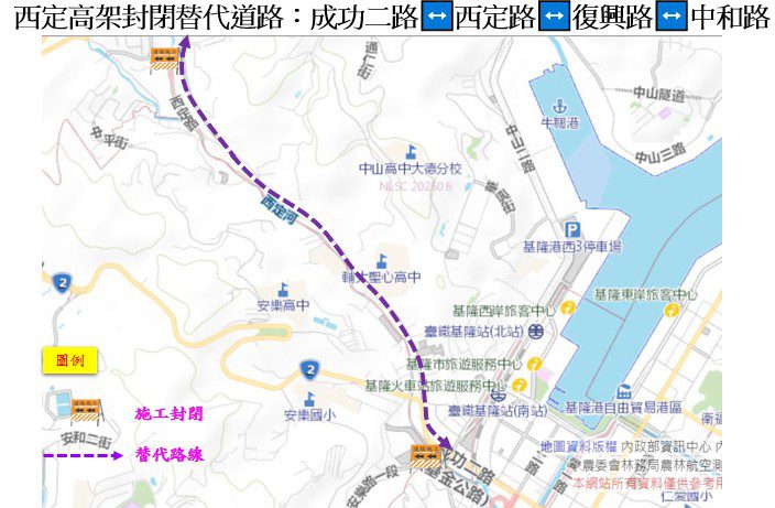 為提升市民行車安全,基隆市政府工務處將於114年8月20日(星期三)上午9時至下午4時,針對西定高架橋進行維修施工,以確保橋梁安全。此次施工期間將實施全線交通管制,請用路人配合改道。