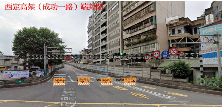 工務處土木工程科長張佑竹表示,西定高架橋為中山區銜接市區重要道路,交通量極大,為延長橋梁使用年限及保障用路人安全,經定期檢查測後辦理修復工作,本次施工項目包含更換P37橋墩一處支承墊及沿線排水管清疏。為避免影響用路人,施工時間選在日間車流相對較少時段,並實施全線交通封閉管制。用路人可改行西定路作為替代道路。施工期間,請用路人務必遵循現場交通人員指揮,小心駕駛,提早出門並預留充足的行車時間。