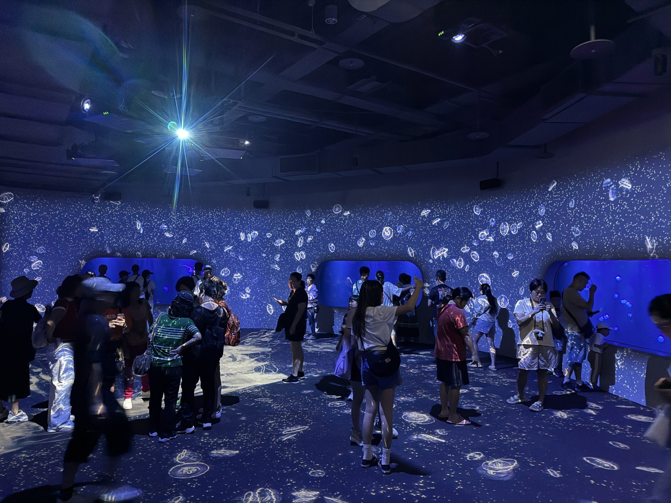 觀旅局長陳美秀表示,台中海洋館採用全國最先進的展示觀念,打破傳統封閉式水族箱設計,館內幾乎全面採取「開放式缸體」,遊客能更清晰觀察海洋生物。這樣的設計,同時也挑戰國人對海洋環境的尊重與愛護。「企鵝展示空間」人氣爆棚,遊客可由下方仰望企鵝悠游的姿態;而館內最受矚目的「水母主題展區」,以全台最大規模、最豐富的水母種類,打造夢幻氛圍,吸引民眾駐足拍照、打卡分享。