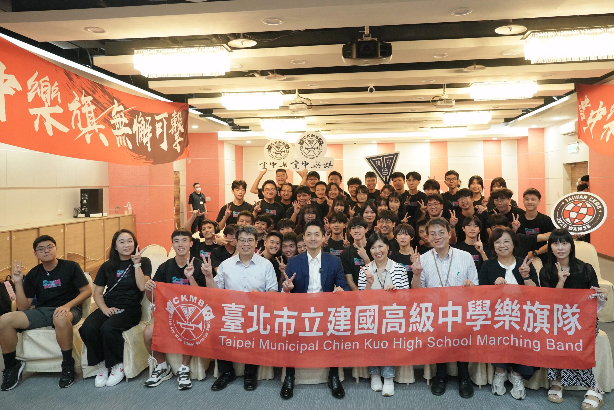 蔣萬安致詞時表示,建中樂旗聯隊用音樂與默契感動世界,是臺北市青少年藝術教育的最佳典範,市府將持續支持學校發展多元才能,讓更多孩子在不同舞台上發光發熱。市長更強調,建中樂旗聯隊不僅是臺北市的驕傲,也是臺灣青年的代表,期待未來有更多年輕人在藝術、音樂與文化舞台上大放異彩,讓世界看見臺灣的力量。