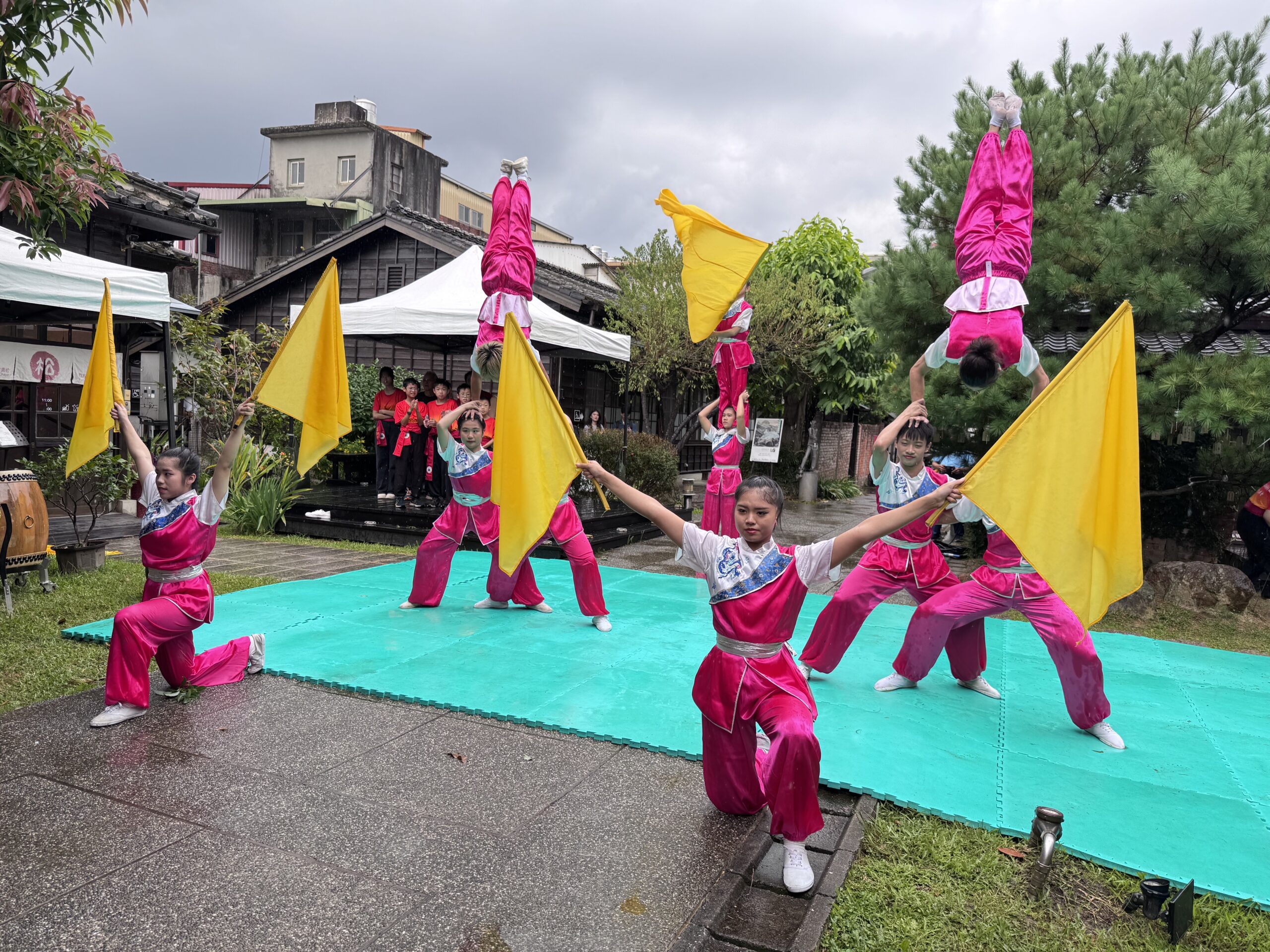 接著台灣戲曲學校學生的多項表演有表演大旗、軟骨功、雙人表演、舞流星及滾大鼓等,在小雨中表演軟墊都是水,對他們而言,更增加困難度,但是表演者仍盡心盡力表演,確實令人感動。後因太大雨,才叫暫停。提前結束。不過他們都是勇者表演。