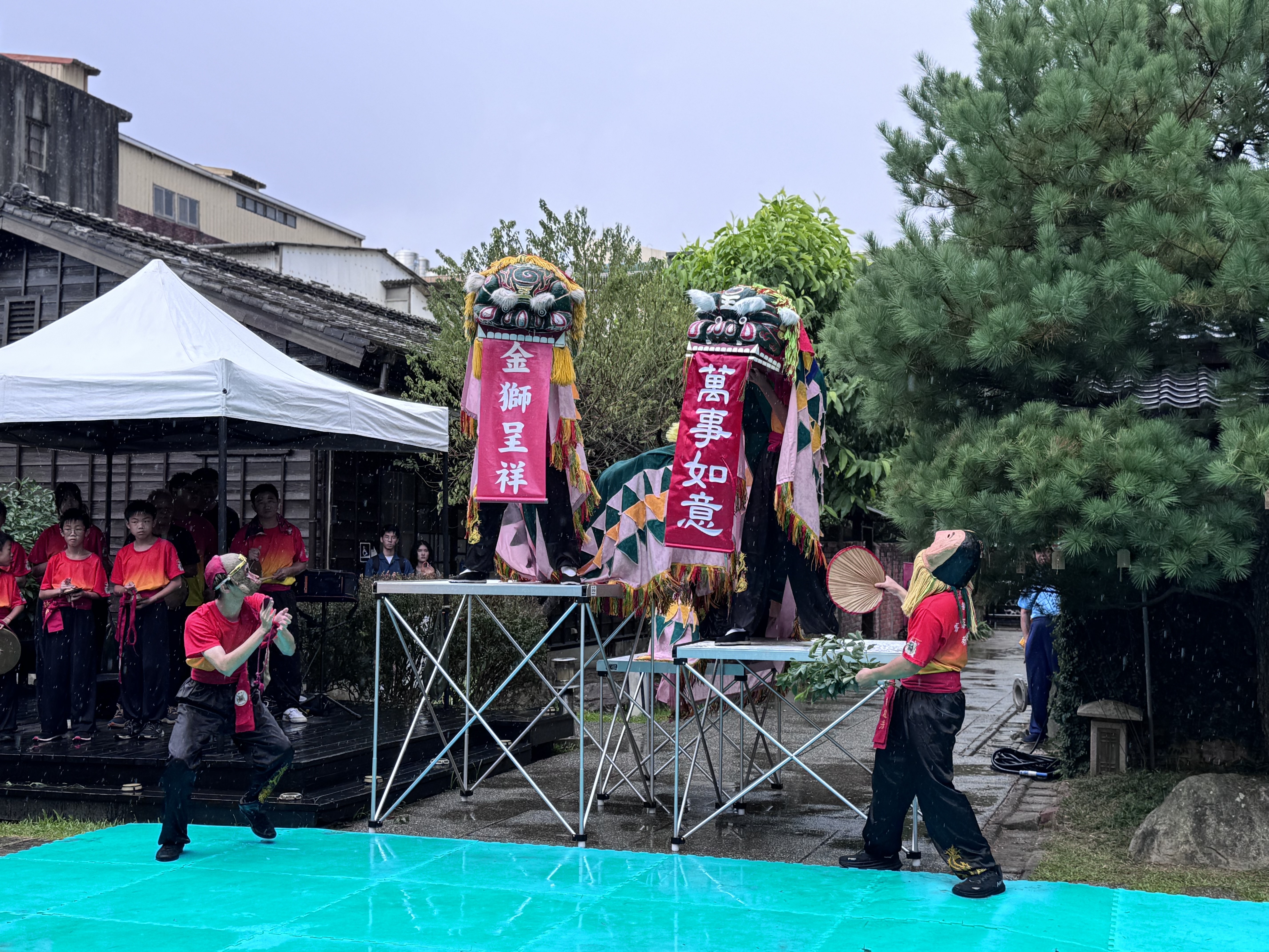新竹縣客家獅成果展的發表會,由客家獅打頭陣外,接著邀請台灣戲曲學校同學進行多項的表演,雖然學生在軟墊下表演,天公不作美,還是不斷下著內,在表演途中更是大雨滂沱,只好叫停。