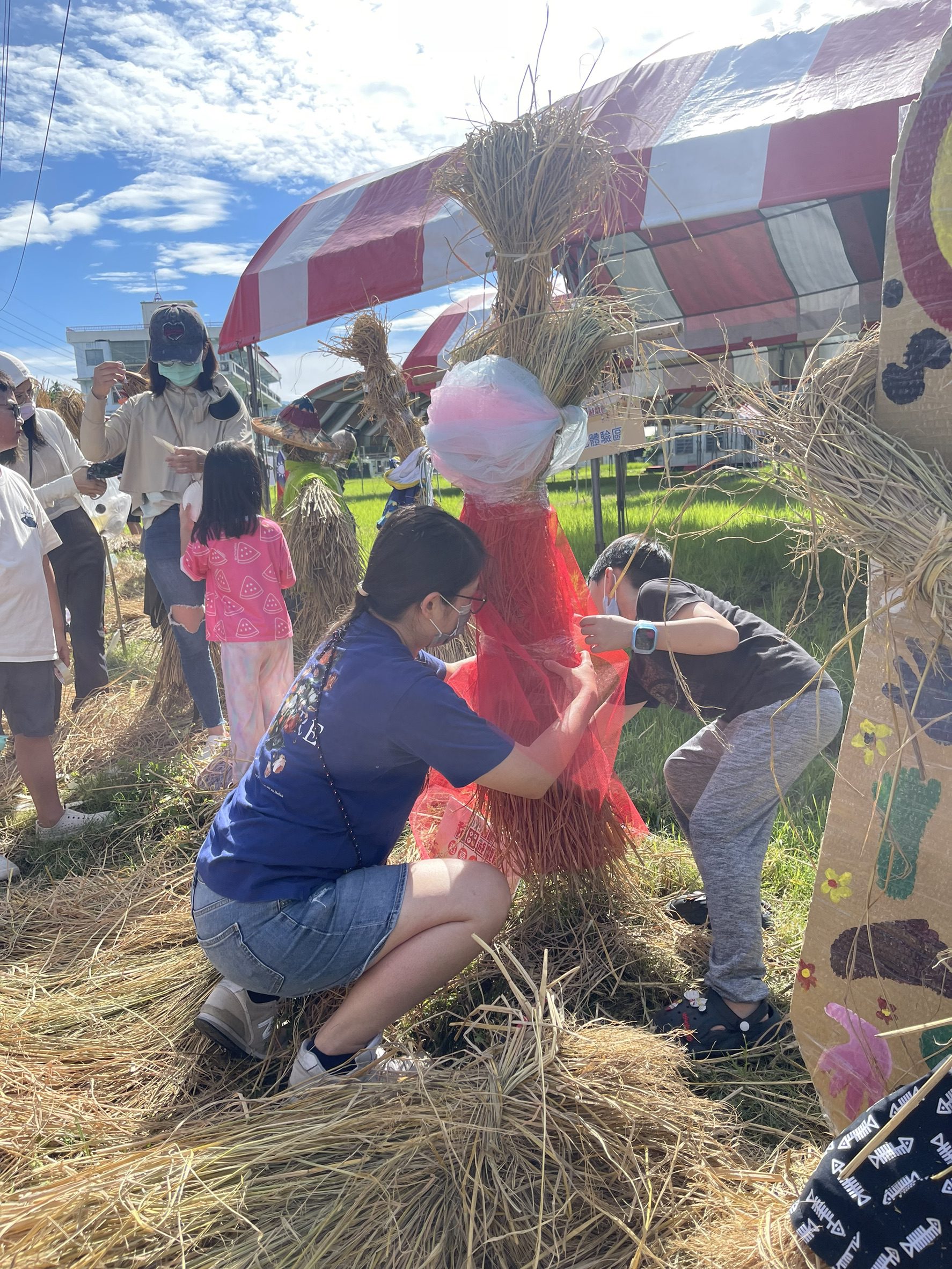 親子共同動手裝飾稻草人,發揮創意樂在其中