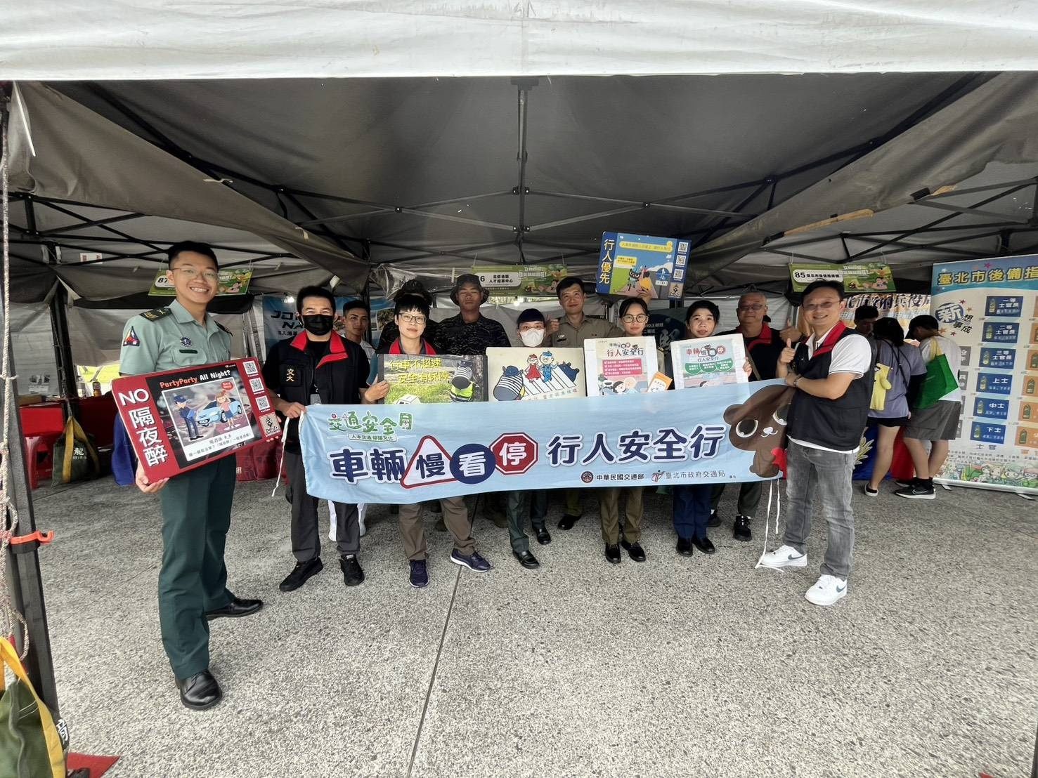 交北市政府交通警察大隊參與由臺北市政府消防局主辦之「114年國家防災日」活動,結合交通安全宣導,期盼透過寓教於樂方式,提升市民防災意識,並強化正確用路觀念。