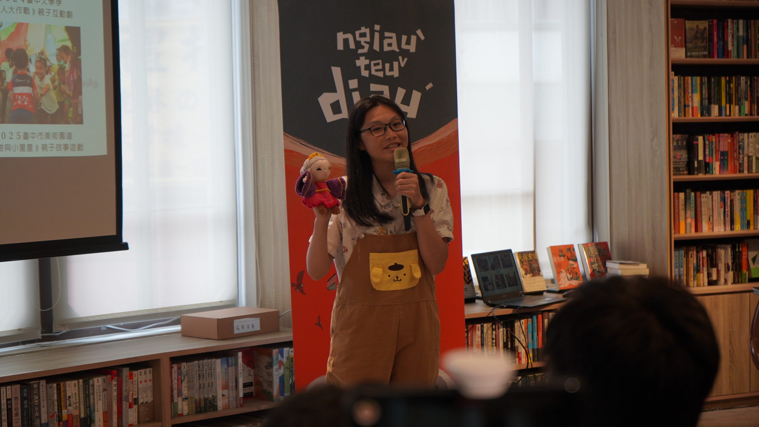 為推廣客語繪本創作與增進閱讀風氣,台中市政府客家事務委員會20日在台中中央書局舉辦《貓頭鳥》客語繪本新書發表會,以繪本為起點,邀請來自劇場界的多位創作者齊聚一堂,從語言、創作與表演藝術的角度,分享他們對《貓頭鳥》的閱讀感受與延伸想像,呈現語言與藝術交織的溫柔力量。