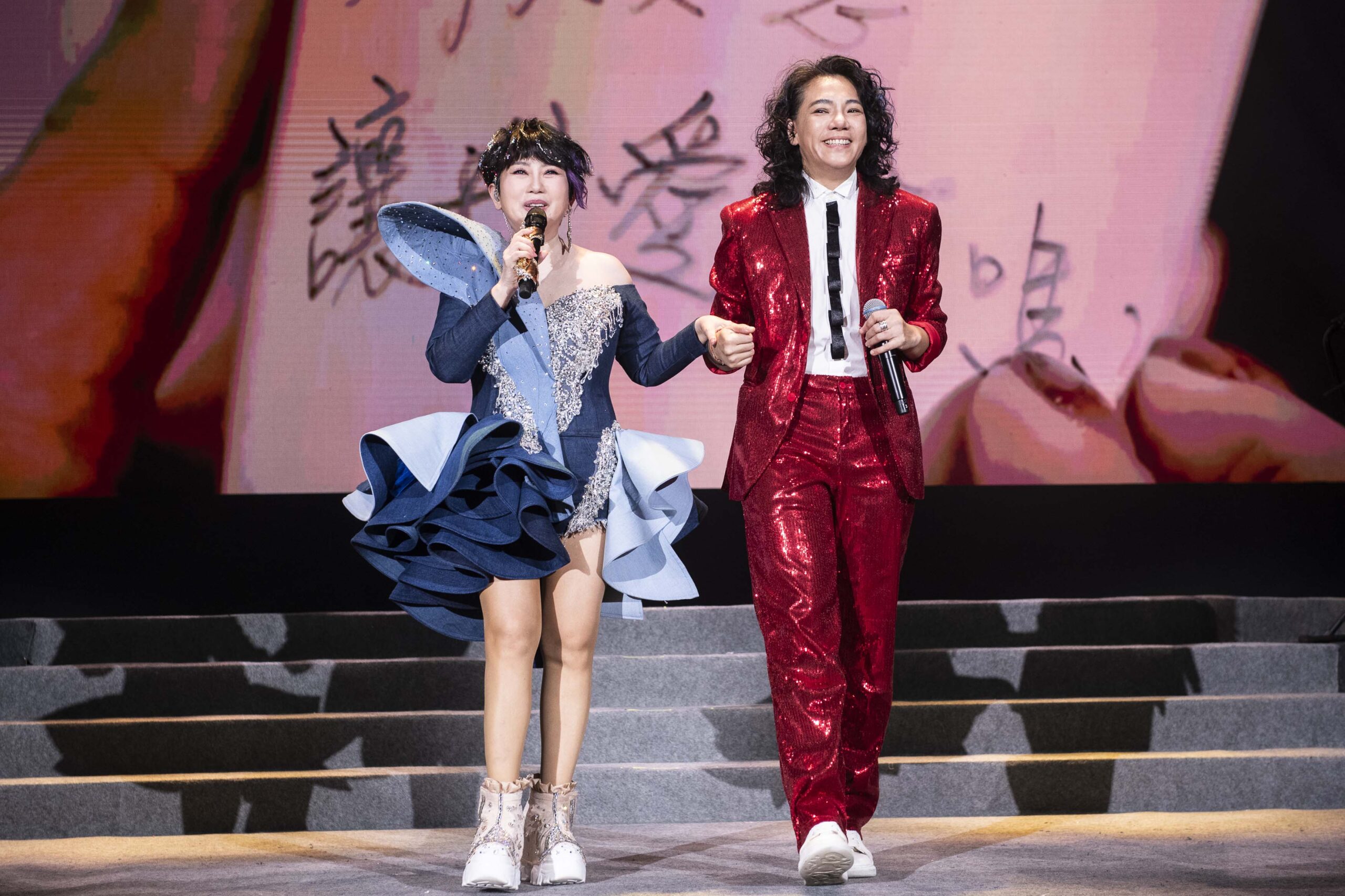 周思潔先是跟台下的康康互動,「這位觀眾聲音很熟悉」,她定睛一看,才發現是康康坐在觀眾席,周思潔笑說,你的聲音太特別了啦,康康則表示,自己才剛從高雄坐高鐵北上,「我要唱歌嗎?不好啦,剛剛的嘉賓高璟穿亮皮,妳也穿亮片,身為一位專業的表演者…,那妳等我一下,我回永和家換裝,來回要1個小時。」周思潔聞之苦笑說:「這樣等你回來,演唱會就散場了啦。」