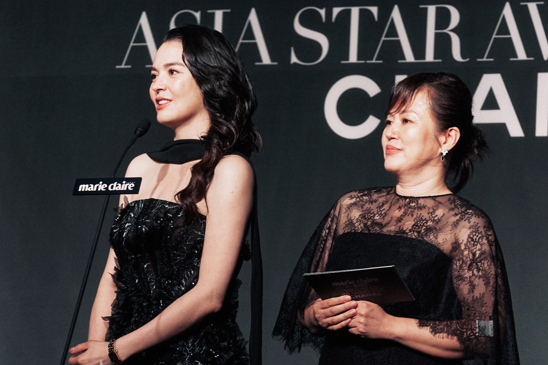 張榕容(左)與金今順(右)於美麗佳人亞洲之星大賞頒獎典禮共同頒獎 照片提供:台北電影節
