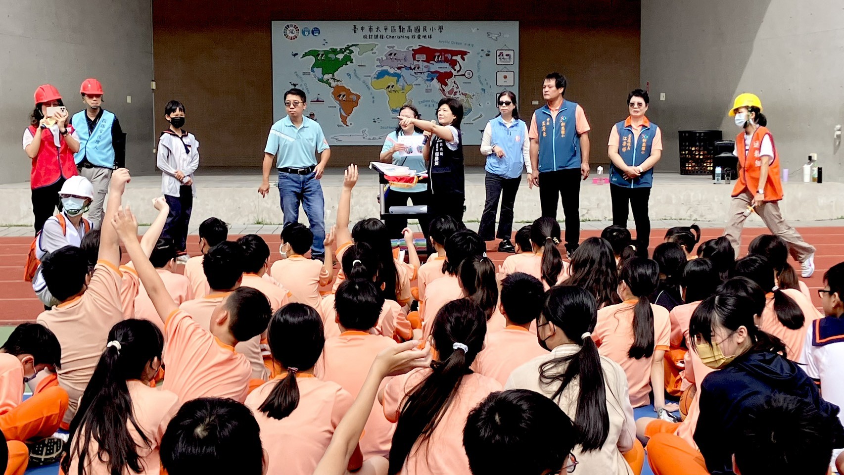 台中市政府注重校園防災,每年921國家防災日各級學校透過教育宣導與實際避難演練,強化師生地震災害應變處理能力,今年全國學校於9月19日上午9時21分進行演練,台中市於今(22)日在太平區新高國小舉行防災示範觀摩演練,教育局副局長賴緣如到場視察新高國小的演練,檢驗各級學校對於災害應變的處理能力。