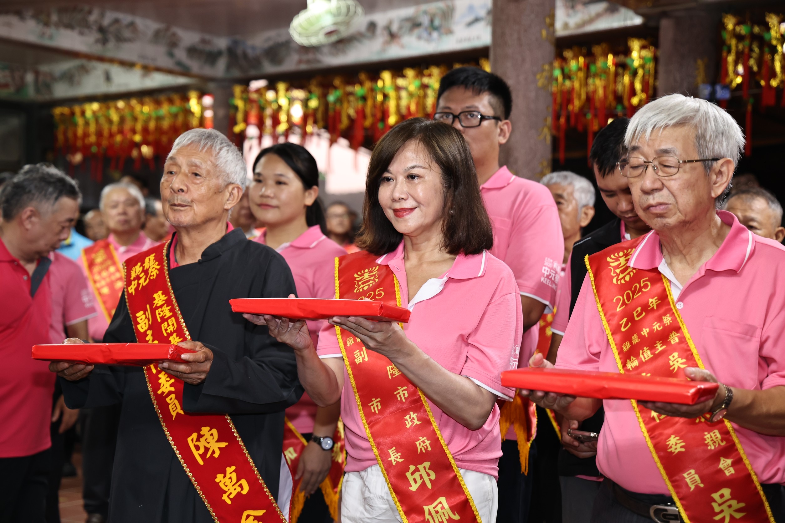 隨後在慶安宮舉行的交接手爐儀式中,吳姓宗親會依循傳統,將象徵香火與責任的手爐移交給明年輪值的劉唐杜姓宗親會。主委吳春成表示,手爐交接意味著一個輪值年度的圓滿落幕,也開啟下一年度的承擔與使命。邱佩琳指出,這項儀式體現中元祭文化的延續與代代相傳,更凸顯宗親會間共同守護文化資產的責任與使命。