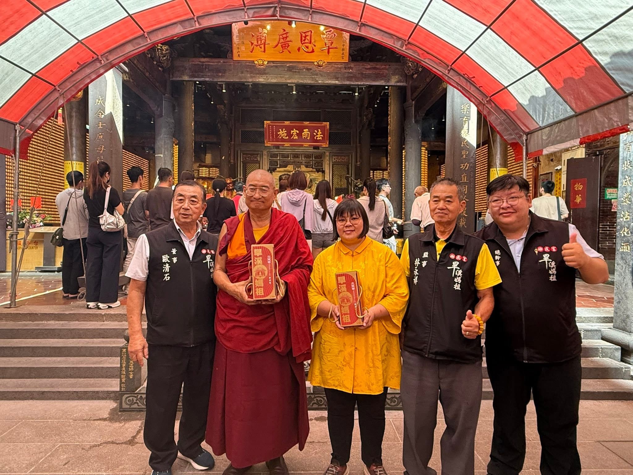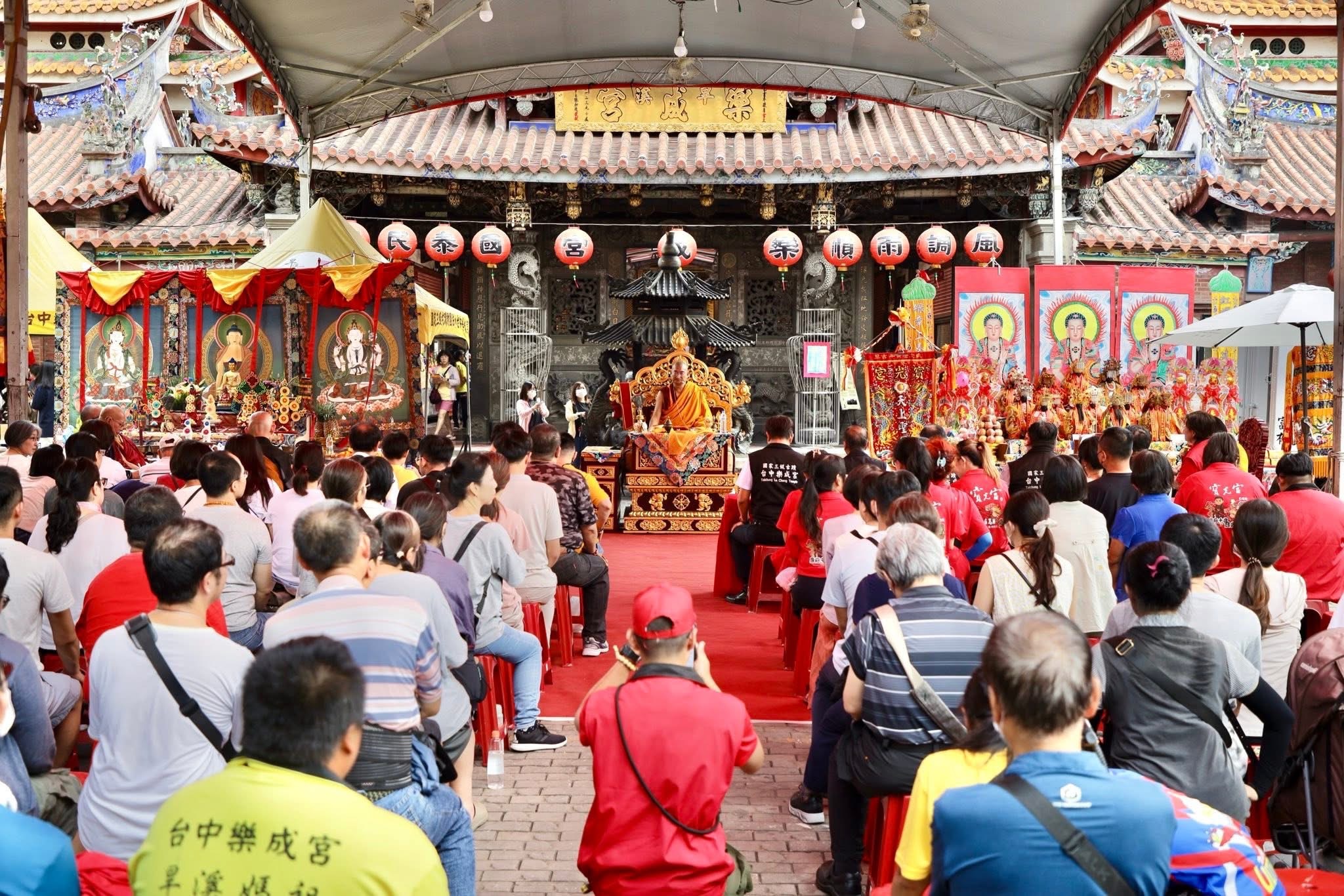 在媽祖出巡的殊勝因緣下,台中百年古蹟樂成宮迎來了一場跨越宗教藩籬、融合佛道精神的盛會。應寶光宮宮主田乃文與眾多宮廟的祈請,尊貴的覺囊派海外法主──嘉察法王,親臨樂成宮主持釋迦牟尼佛隨喜灌頂,成為史上首次於百年媽祖廟前舉辦的佛教灌頂法會。