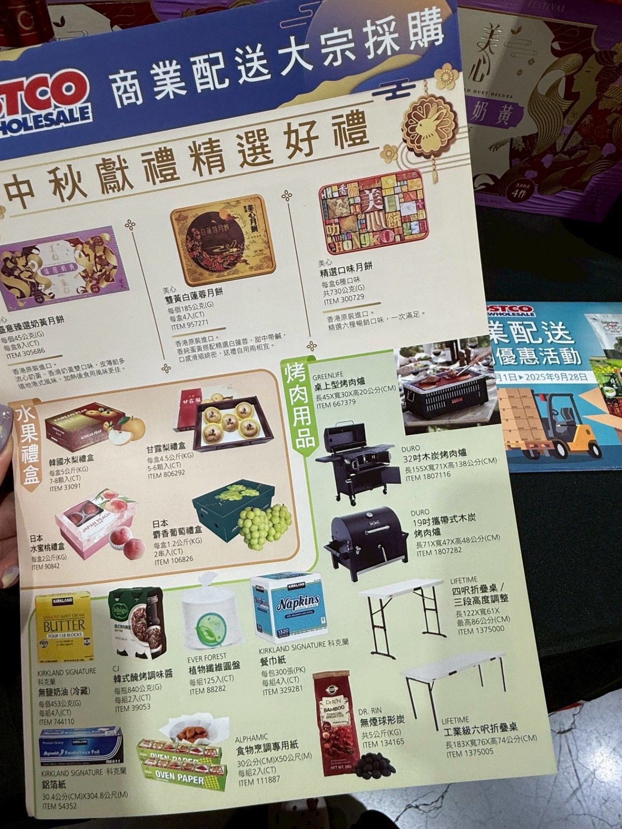 中秋節就是要烤不停!美式賣場好市多(Costco)中秋應景品賣翻。有會員分享,到賣場想買烤爐,才發現滿萬元有商業配送,現場生鮮特價品集中區更方便採購,直呼好市多線上線下都商品滿滿,還問網友推薦哪款烤肉醬。網友們都說,下雨天太麻煩線上採購直接送很方便。至於烤醬,韓式醃烤調味醬、胡椒鹽都很不錯。