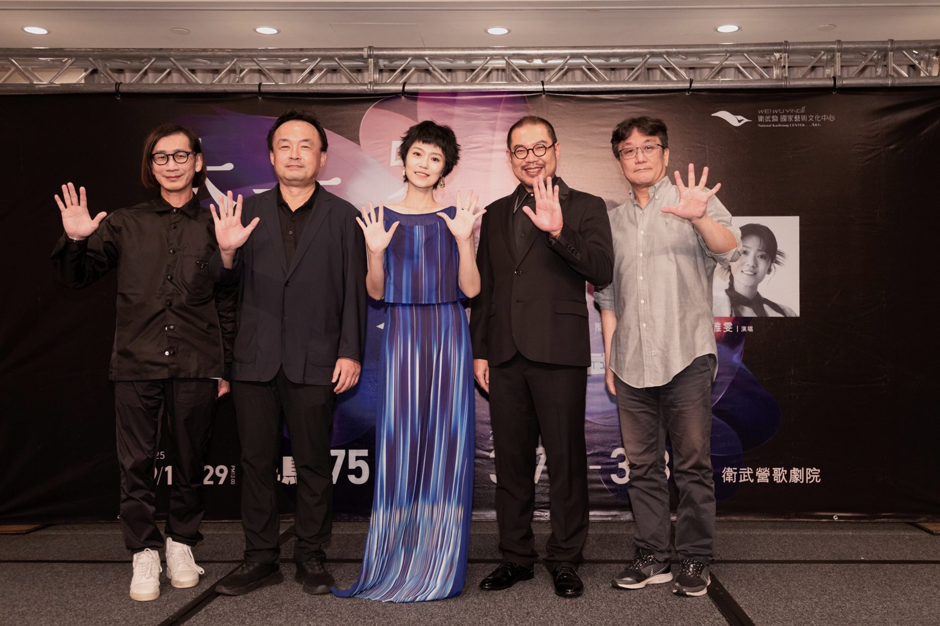 (左起)大玩樂家製作人劉慕堯、國立臺灣交響樂團團長歐陽慧剛、曹雅雯、指揮簡文彬、音樂總監櫻井弘二登衛武營歌劇院 照片提供:衛武營國家藝術文化中心