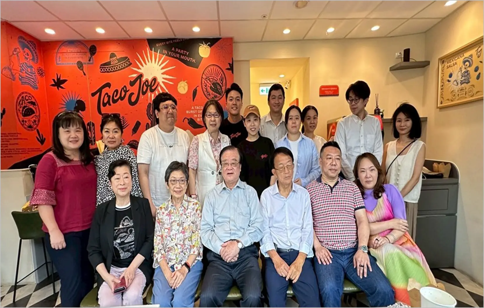 圖:群景群景國際商務法律事務所團隊與榮譽所長林忠生賢伉儷(前中及前左二) TacoJoe 創辦人夫妻及貴賓們合影。