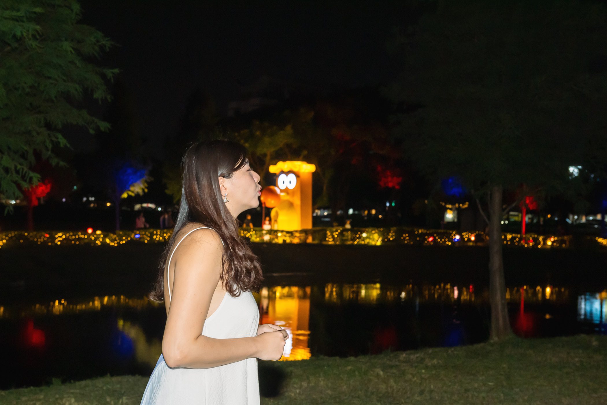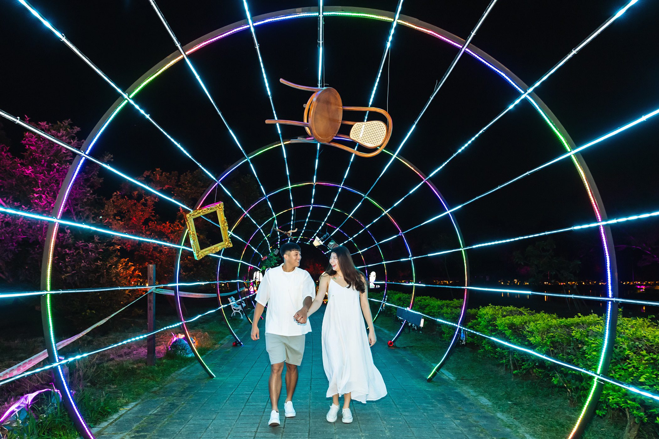 三年前在「I CHIAYI U(我佮意你)」光影裝置前浪漫告白的新人,今年也攜手再度回到北香湖,於「2025嘉義市光織影舞」現場重溫當年的心動與承諾。光織影舞不僅點亮嘉義市的夜晚,更點亮屬於他們的愛情故事。