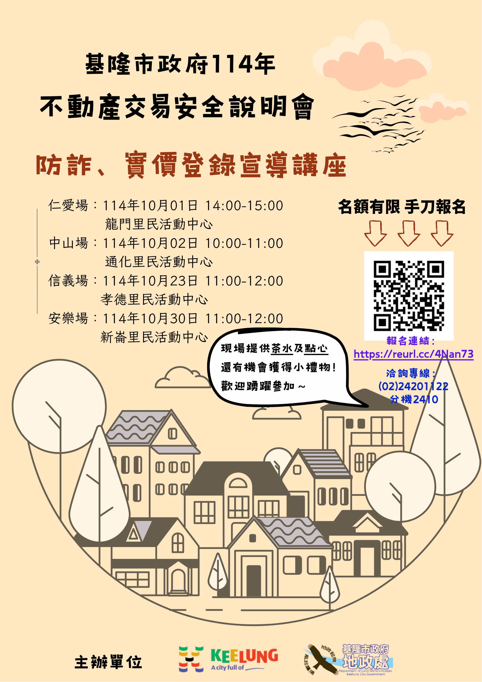 此篇文章最開始出處為: 快報名!基市府辦不動產防詐講座 免費教您守護權益