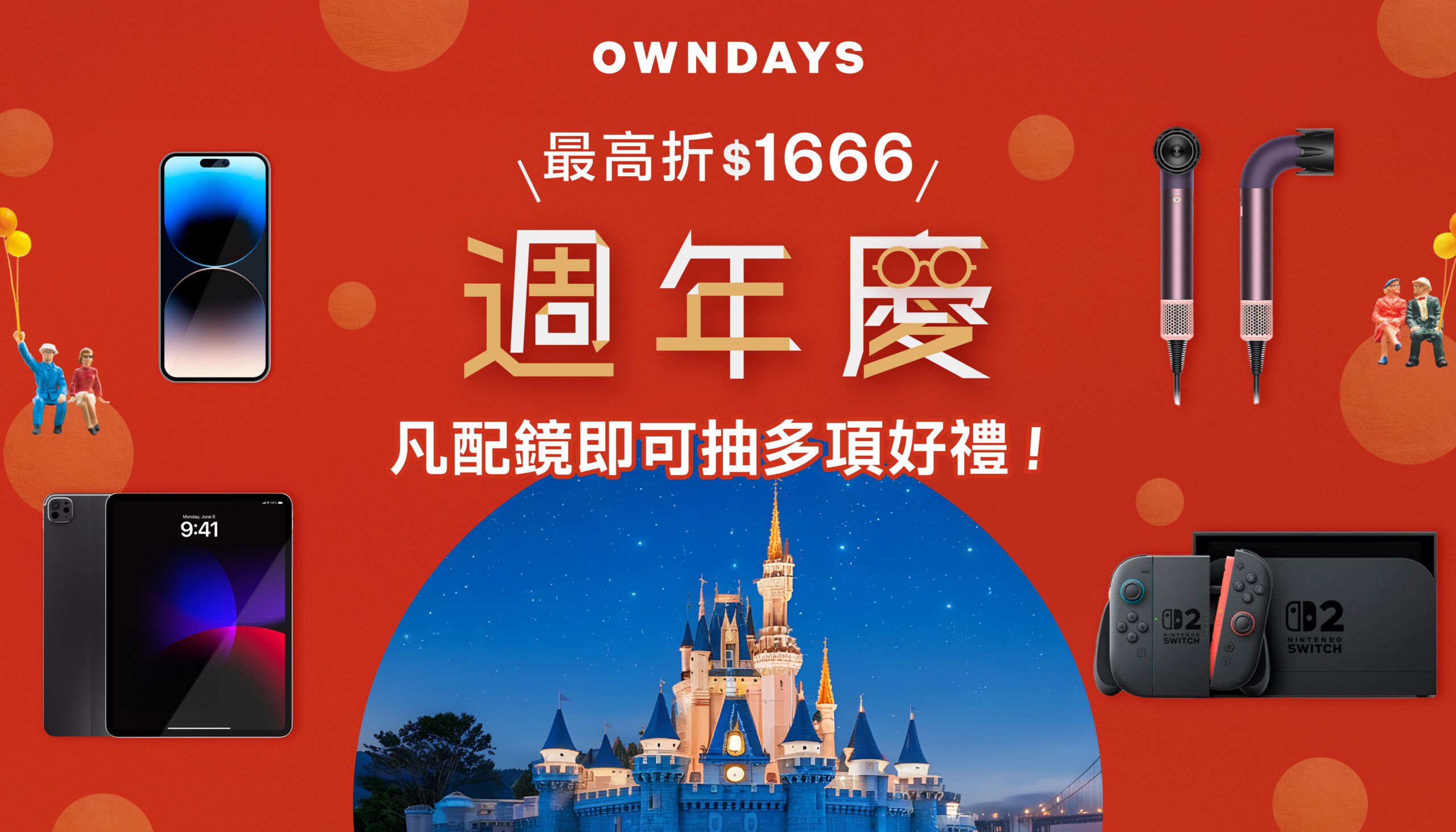 此篇文章最開始出處為: 搶便宜趁現在!OWNDAYS週年慶四重優惠同步開跑 豪禮加碼再抽東京迪士尼夢幻雙人遊等多項大禮