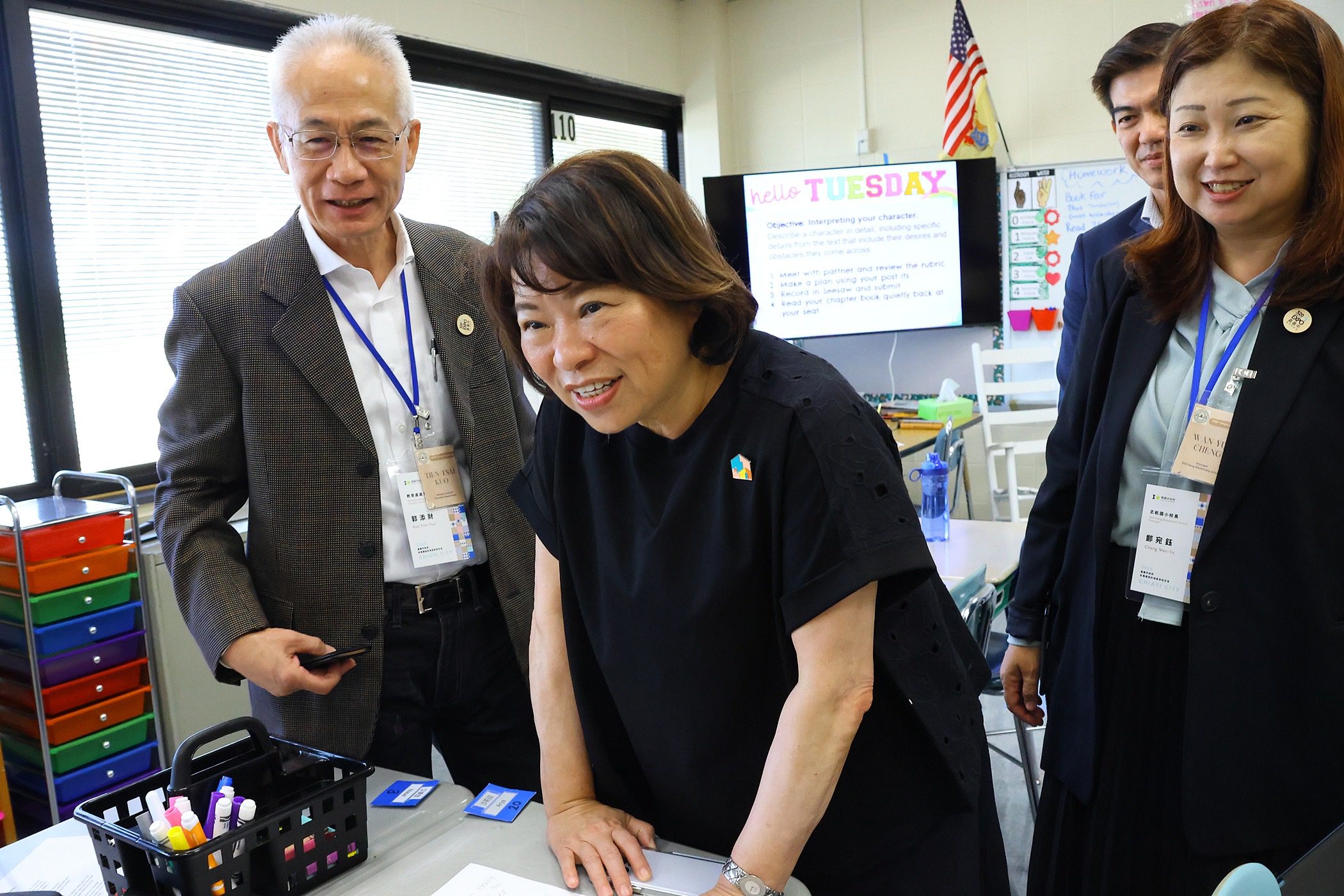 黃敏惠市長此行帶領市府團隊參訪族裔多元,且以新穎活潑教學見長的WW-P學區,同時也為其多元、活潑的教學方式印象深刻。其中,Maurice Hawk 小學推動雙語沉浸式課程(Dual Language Immersion, DLI),其特色為在數學、科學與語文學習中,同時融入中文與西班牙語教學。這不僅增強了語言能力,也培養了跨文化理解力。這樣的教育模式與嘉義市推動的「雙語教育」方向相呼應。