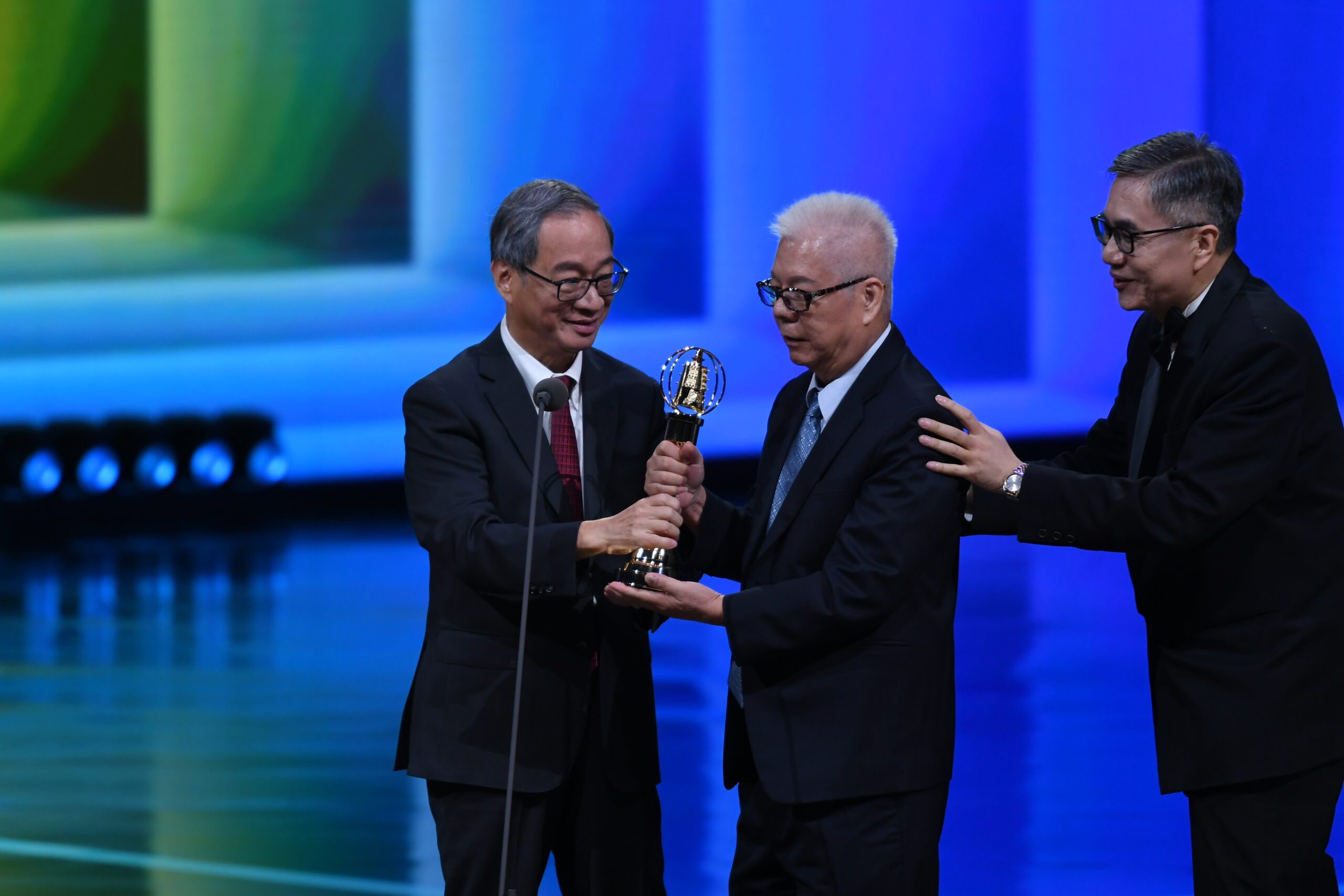 今年特別貢獻獎由文化部長李遠(左)親自頒發給幕後錄音師廖江華老師(中)    照片提供:三立電視