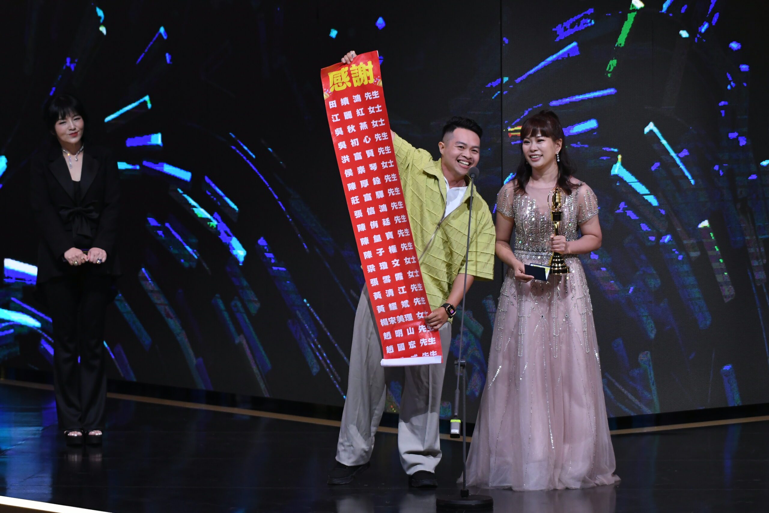 教育文化節目主持人獎由Hayung 哈勇(高瑞麟)佳怡(劉佳怡)奪得、受訪者高偉恩更直接在台上公開向女友求婚。   照片提供:三立電視