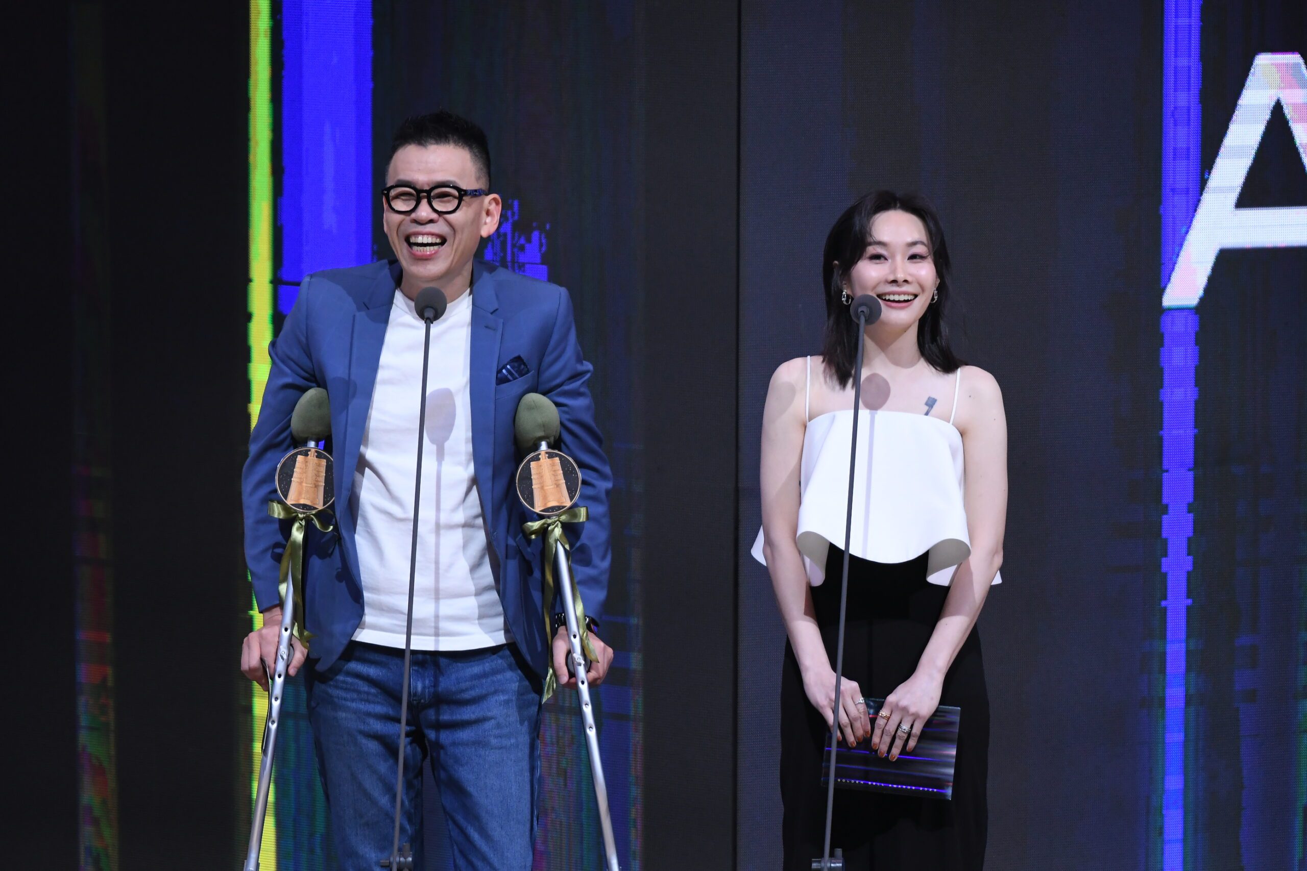 阿本(左)與劉書宏(右)登上廣播金鐘舞臺擔任頒獎人    照片提供:三立電視
