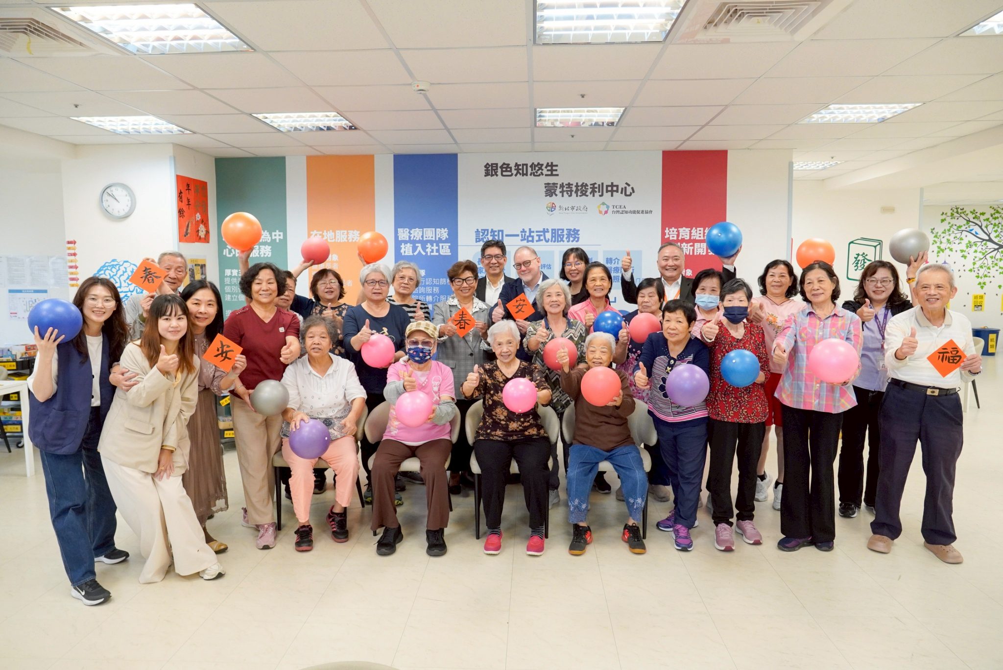 Rick博士與譚孟春教授一行與「銀色知悠生-蒙特梭利中心」長輩們。(新北市社會局提供)