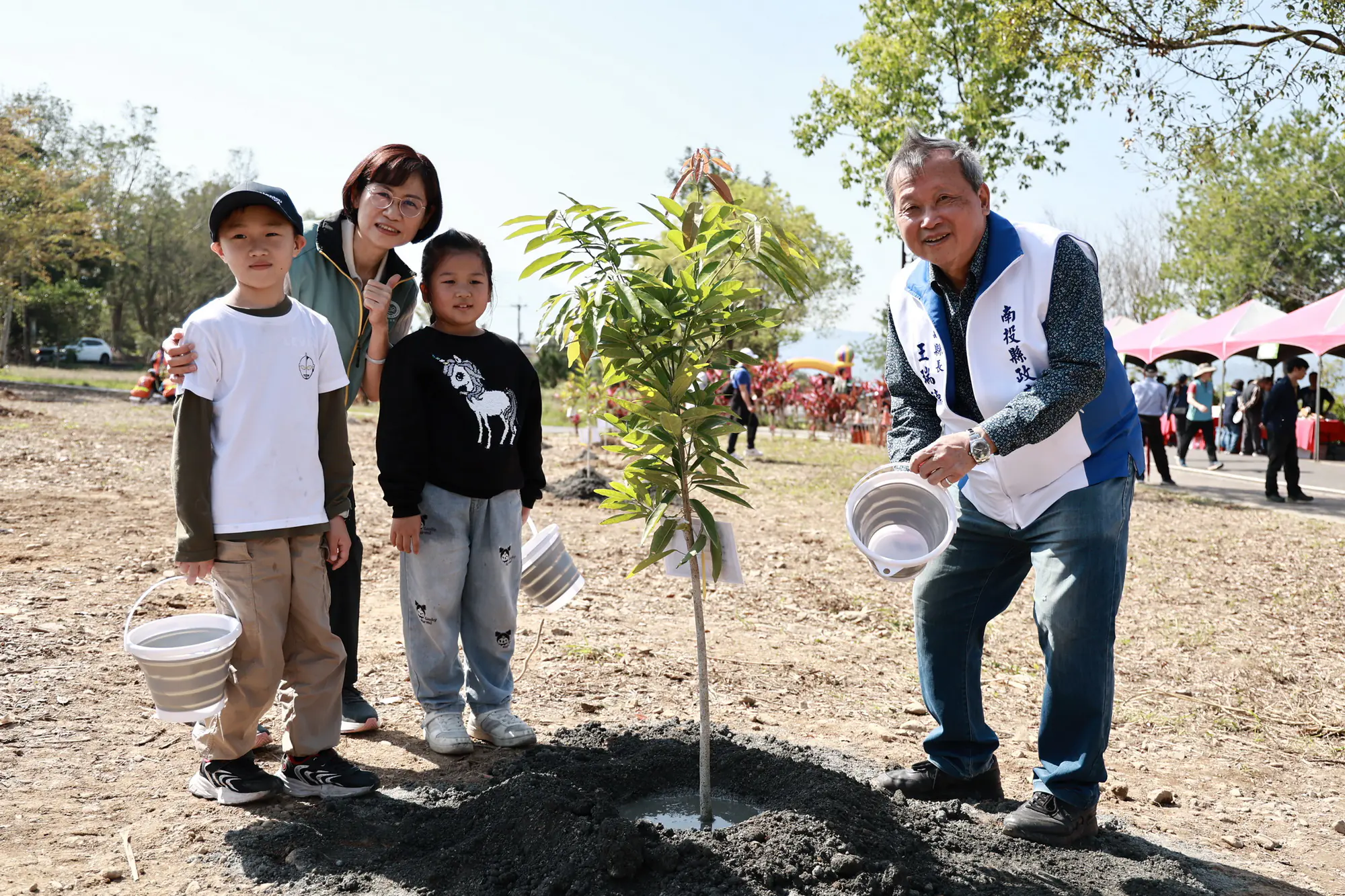 由南投縣政府與農業部林業及自然保育署共同舉辦的「原地扎根•韌性森活」南投縣植樹節活動,7日上午在埔里福興溫泉區熱鬧展開,現場除結合宣導、農特產品展售外,還有限量手作多肉植物及闖關遊戲贈樹苗等活動,副縣長王瑞德也帶領大家一起動手種下梭羅木及肖楠等台灣原生種樹苗,期望未來能打造出綠意盎然、永續發展的福興溫泉區。