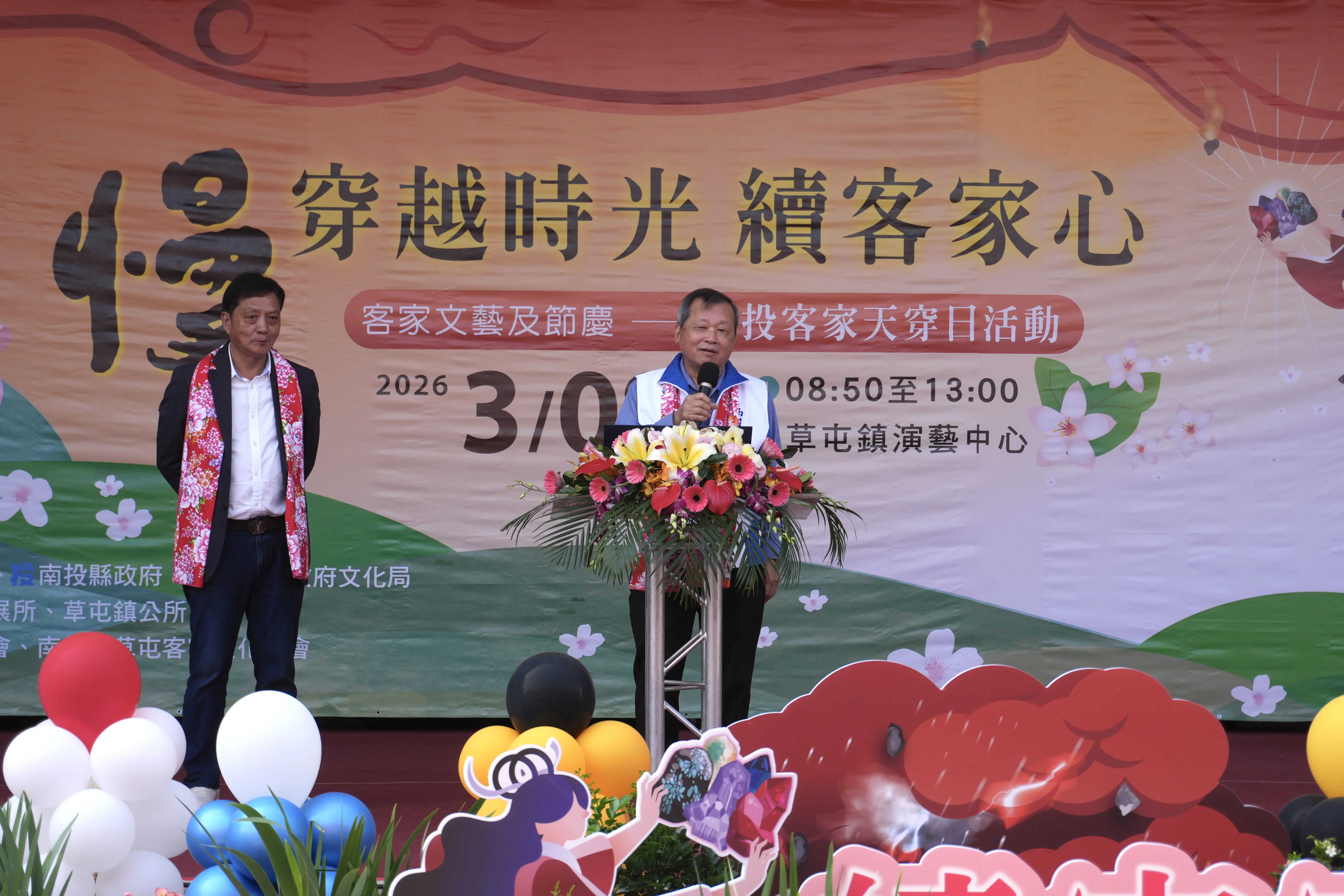 活動由副縣長王瑞德、草屯鎮長簡賜勝帶領依循客家傳統「三獻禮」祭儀祈福祭天,共同為縣民祈福;隨後王副縣長及與會貴賓一同進行補天儀式,將活動帶到最高潮。客家委員會參事范雪景、縣議員簡峻庭、廖梓佑、南投市長張嘉哲都出席參與。