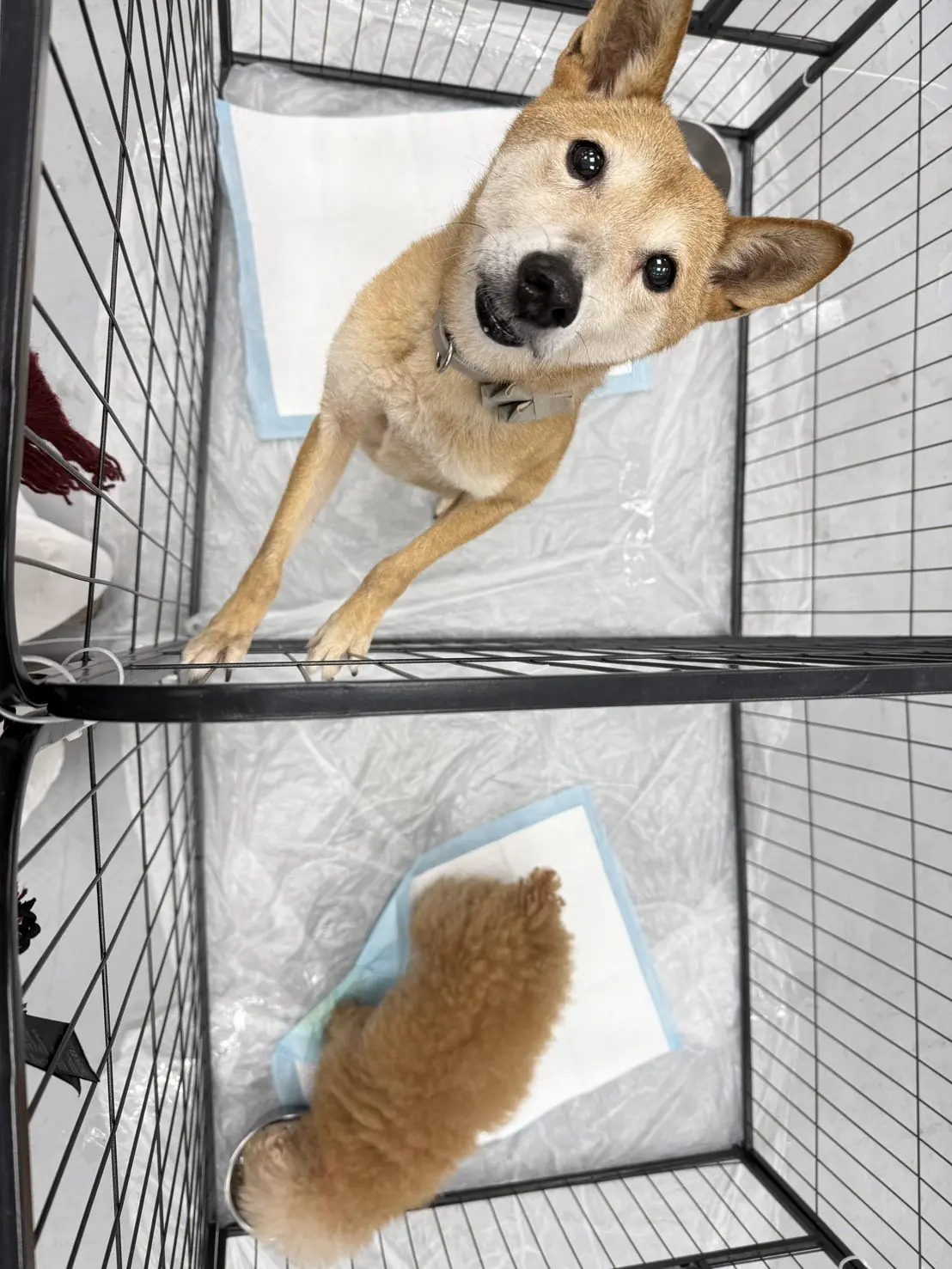 台灣收容動物關懷協會與動保處志工領軍,帶領「地瓜圓」與奶奶級貴賓犬「MINI」狗狗走出動物之家圍籬,在合作商家空間與民眾自然相遇。[圖:臺北市動物保護處]