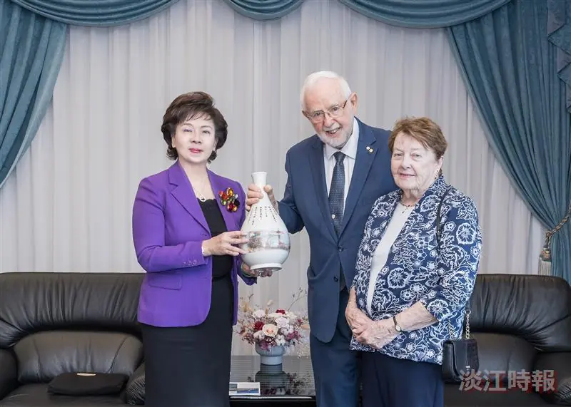 【潘劭愷淡水校園報導】本校攜手世界和平基金會(International Peace Foundation),透過「臺灣橋梁計畫」(Taiwan Bridges),邀請的熊貓講者,加拿大皇后大學教授,薩德伯里微中子觀測站研究所主任Prof. Arthur B. McDonald伉儷與基金會主席Uwe Morawetz,3月9日上午10時30分及11時,由學術副校長許輝煌、理學院院長薛宏中、物理系系主任莊程豪陪同,分別拜訪校長葛煥昭及董事長張家宜,葛校長與張董事長除致上歡迎之意,向Arthur B. McDonald教授介紹熊貓講座由來,並分別致贈「熊貓獎座」,及印有李奇茂與張炳煌大師的墨寶、淡江校景及校歌歌詞的花瓶作為紀念。