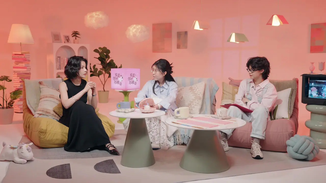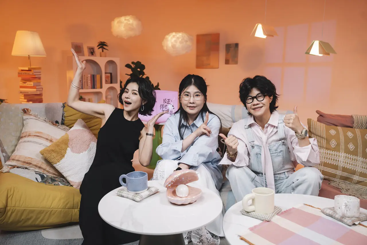 陪沈團「沈」(左)於《反正你也不睡覺》揭討好型人格辛酸(右起為)主持人傑尼、吳曉樂   照片提供:公共電視