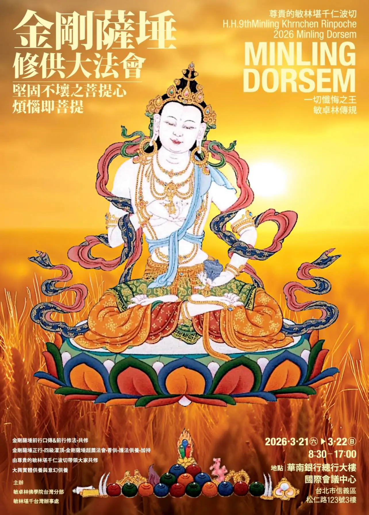 《宗教活動訊息》寧瑪-敏林堪千仁波切/ 金剛薩埵修供大法會|3/21–3/22