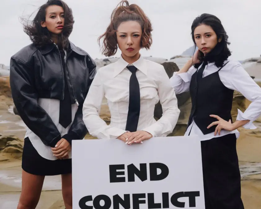 FIVE TWO EIGHT五二八團員成員(左起)Kaina 、Mia、劉玳妍期望透過歌聲為世界發聲,也祈禱世界和平,停止衝突。 照片提供:FIVE TWO EIGHT 五二八