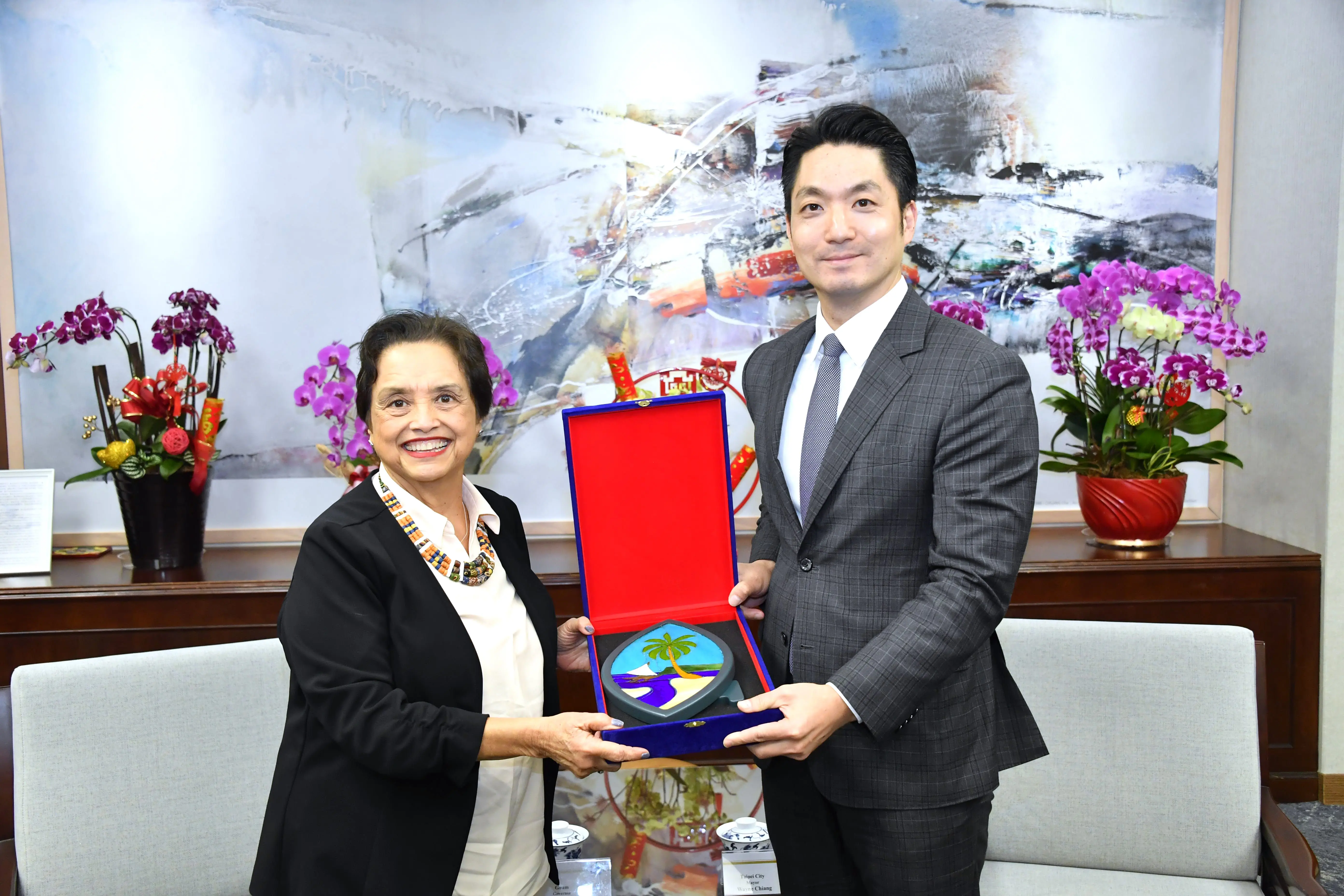 雙方並就城市未來發展交換看法。蔣市長表示,臺北市正積極推動AI發展,並期望在2035年前將臺北打造為全球前十大AI城市。古蕾露總督則表示祝福蔣市長的願景順利實現,並指出目前全球社會對於AI既期待又擔憂;關島在教育中鼓勵學生將人工智慧視為學習與工作的資源,而非取代人類思考的工具,培養善用科技的能力。