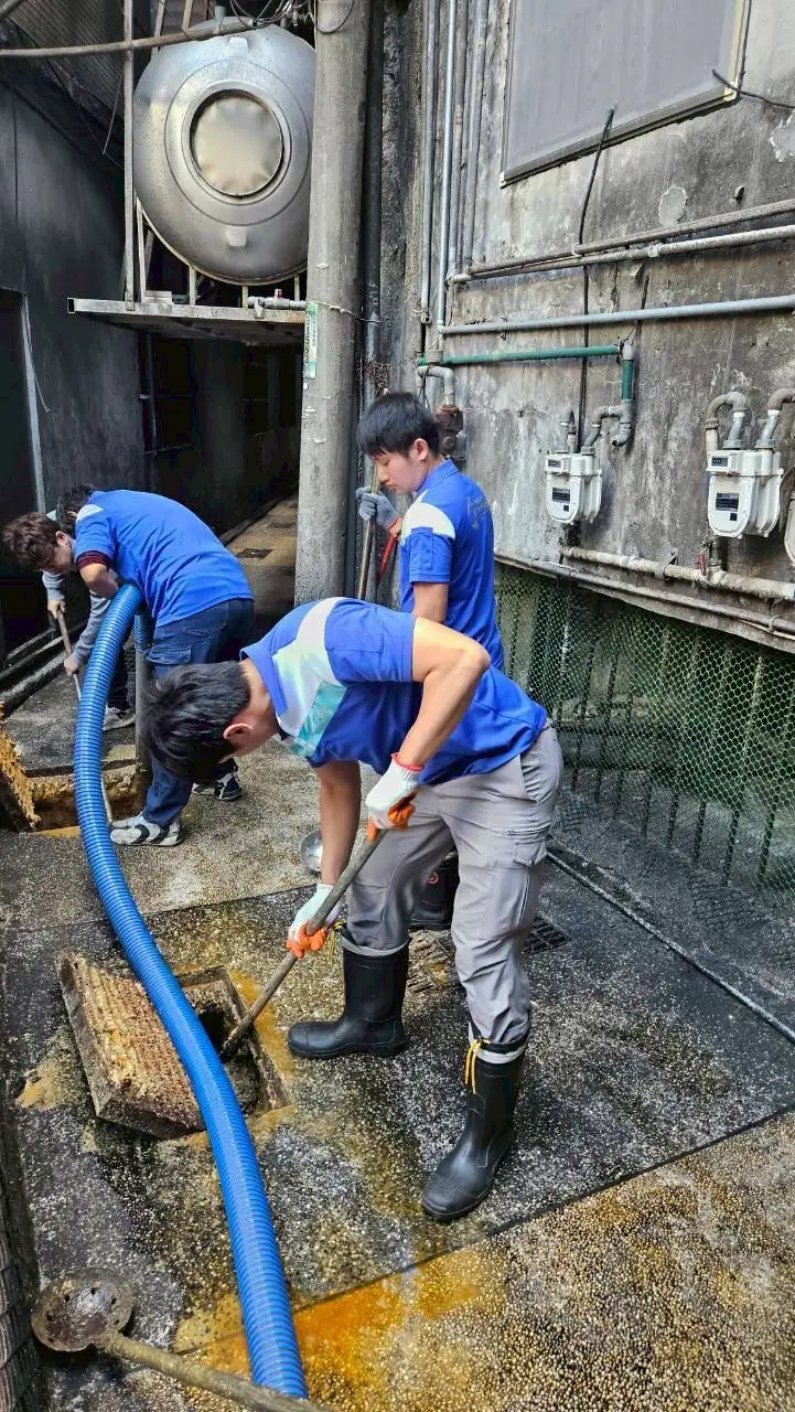 馬仲豪指出,鑑於現場路面油污溢流情形嚴重,為維護行人通行安全,環保局現已調度清溝車輛與清潔隊同仁20人支援仁愛區公所行政協助進行側溝油污水抽除作業,以防止油污持續溢流造成環境污染並影響民眾通行安全。