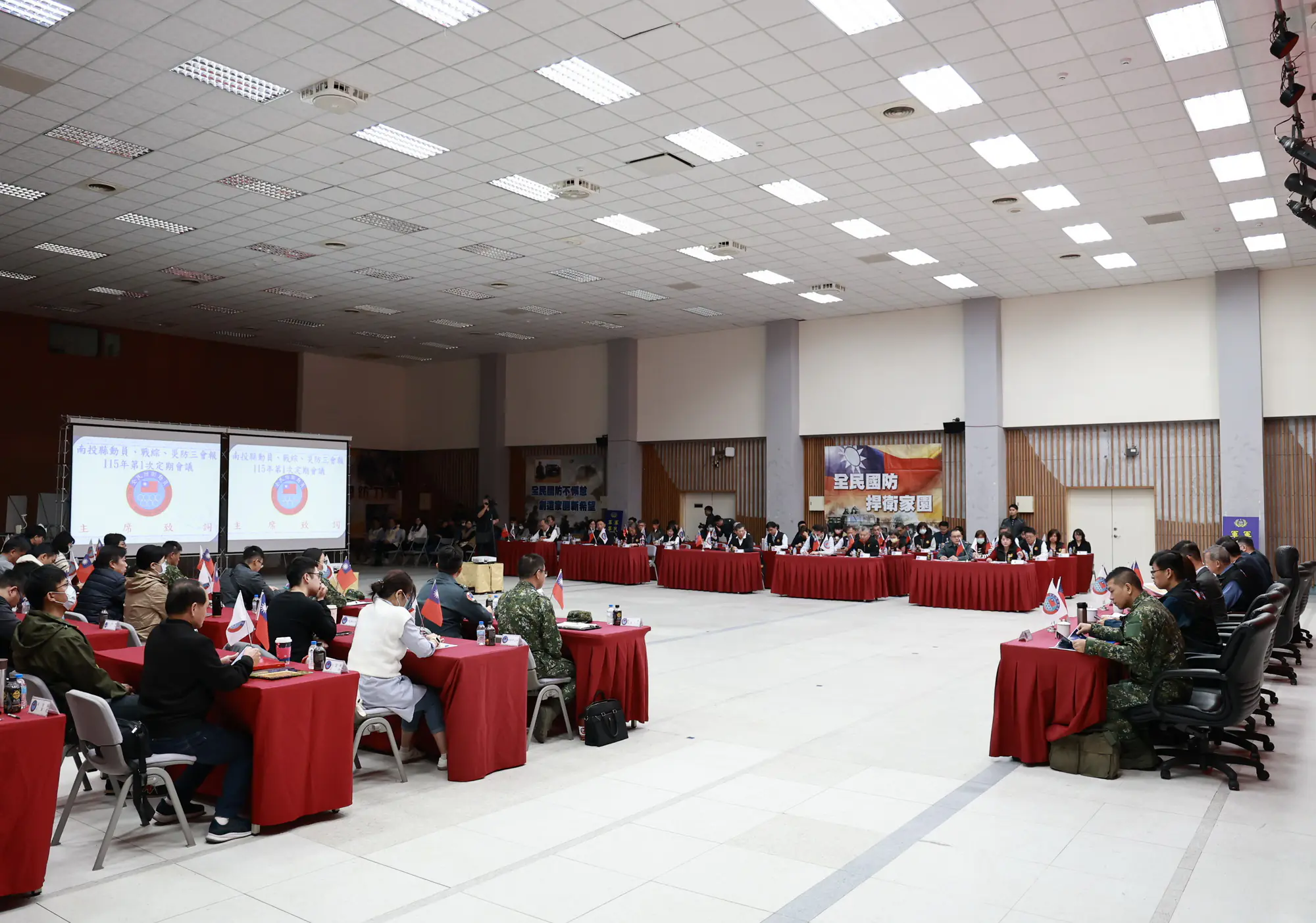 包括行政院動員會報吳國良處長、行政院災防辦公室李彥毅參議、臺閩戰綜會報孫福康上校、中部地區戰綜會報陶成濬少將、南投縣後備指揮部張隆銘指揮官、動員會報執行秘書林琦瑜處長、縣府各局處長,及縣內各公所、民營事業單位約100人與會,藉此整合軍民資源,互相支援各項戰演訓練及防救災任務。