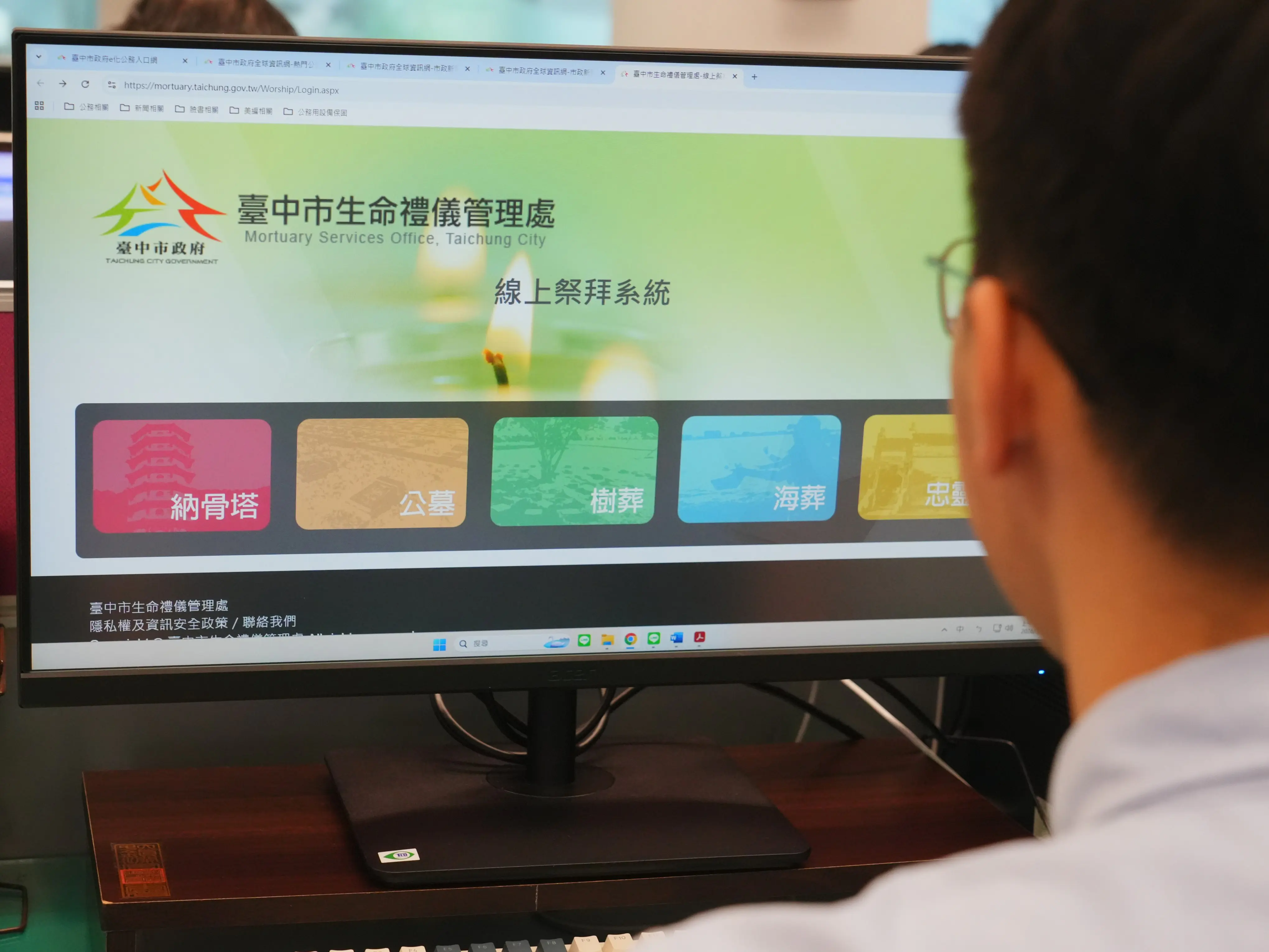 吳局長提到,市府持續鼓勵民眾使用「線上祭拜系統」(https://reurl.cc/V3YAg6)追思先人,系統涵蓋台中市公立納骨塔、公墓、樹葬及海葬區,家屬可申請系統帳號,登入後即可維護「追思園地」或進行線上祭拜。統計顯示,線上祭拜使用人次由110年的1,644人次逐年攀升,至114年已達1萬1,695人次,較5年前成長逾7倍,顯示民眾對線上祭拜的接受度與需求持續提升,展現傳統祭祀文化與數位科技結合的追思新方式。