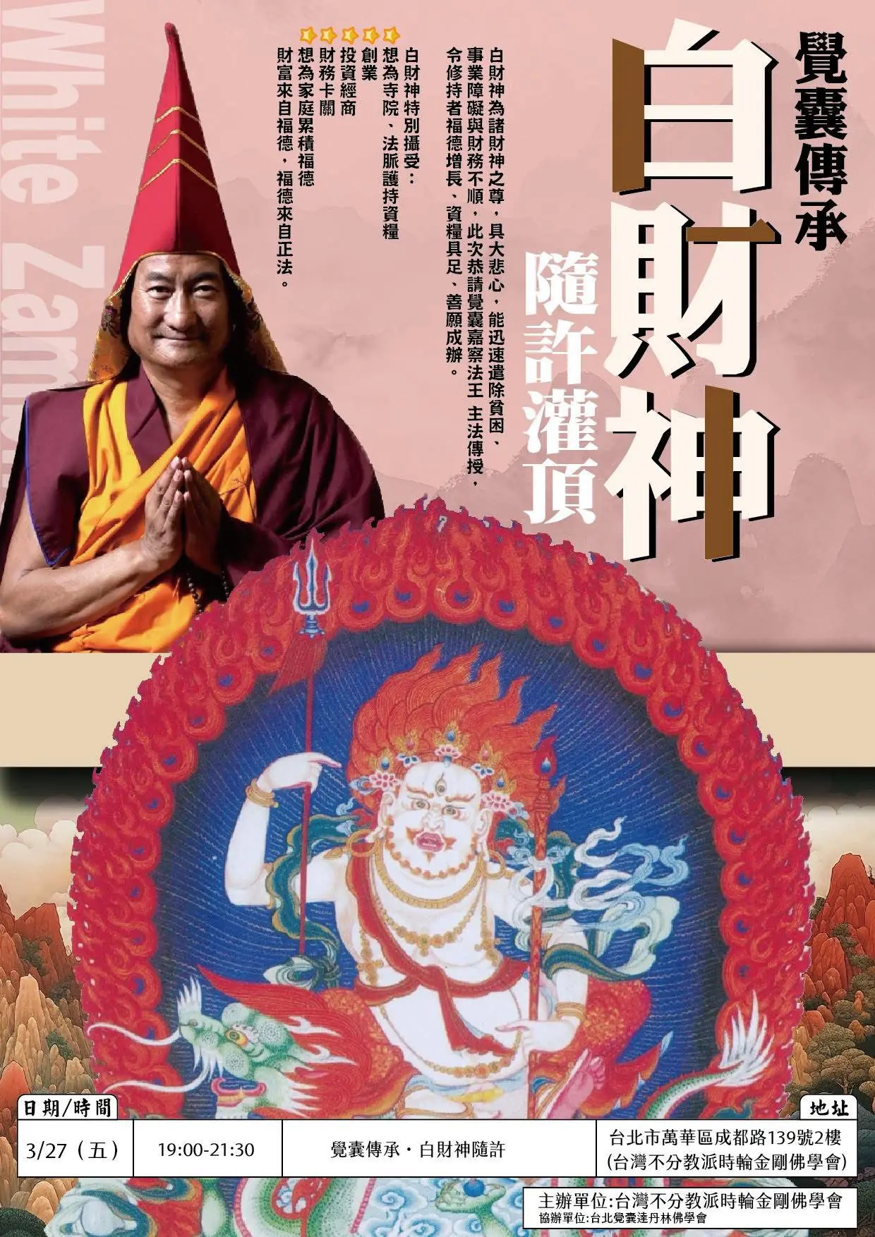 本次白財神隨許法會將於台北與高雄兩地舉辦,歡迎十方善信把握難得法緣。