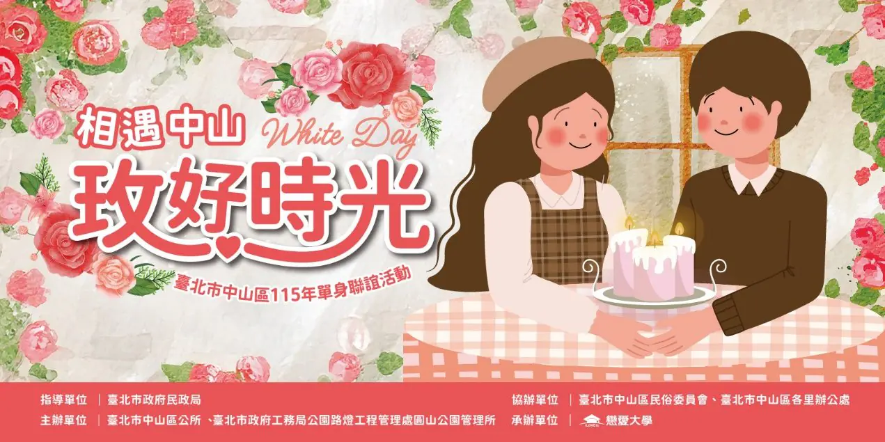 中山區公所為了鼓勵單身朋友拓展社交圈,自2024年起攜手臺北玫瑰展共同舉辦「單身聯誼活動」,讓大家能夠開展新友誼,認識更多不同領域的人。當男女雙雙漫步在浪漫的玫瑰花海中,共同體驗特色手作活動時,愛情也悄然降臨。