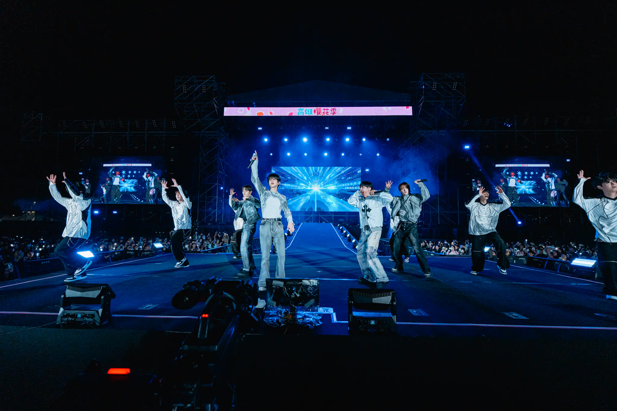 韓國人氣男團 HIGHLIGHT 時隔 3 個半月再度來台登上高雄櫻花季 圖片來源:讀者提供