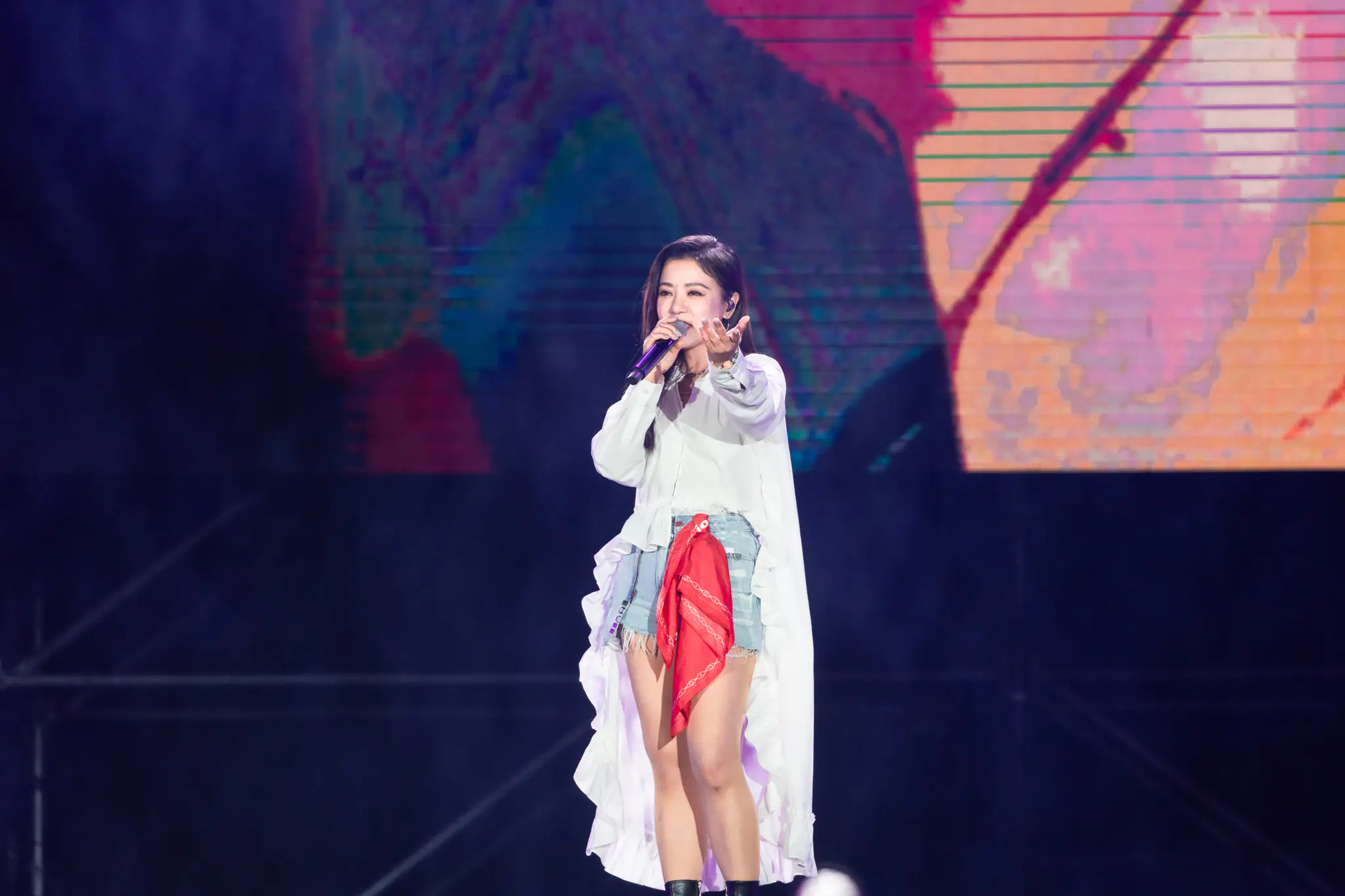 韓國饒舌歌手李泳知壓軸登上高雄櫻花季第二天舞台,一出場便帶著舞者團隊強勢登場,開場先以〈Robot〉展現充滿力量感的機器人舞步與節奏感十足的舞台編排,瞬間點燃全場氣氛,緊接著帶來第二首新歌〈Boomchat〉。她一開口就用台語熱情打招呼:「大家好!我水嗎?」立刻引來全場粉絲尖叫回應。李泳知也開心表示:「這是我第二次來到高雄櫻花季,希望明年我也可以繼續再來,剛開始的兩首歌是我比較新的歌,後面的歌大家都會比較熟,大家要跟我一起嗨喔!」幽默又親切的互動,讓現場氣氛瞬間升溫。
