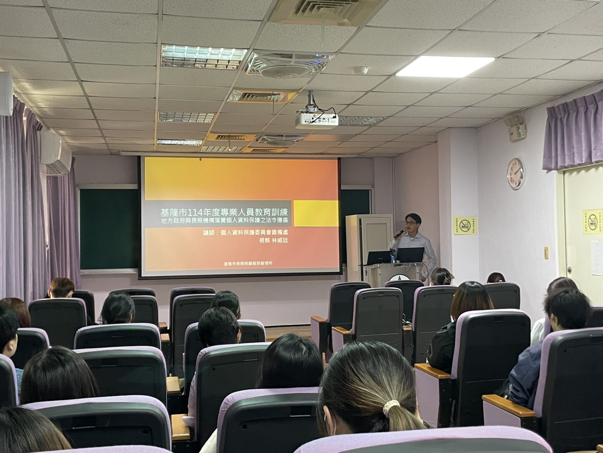 為提升長照體系在個人資料保護與資訊安全上的專業能力,基隆市長期照顧服務管理所昨(1)日於基隆市立醫院國際會議廳舉辦「長照專業人員教育訓練」,以「地方政府與長照機構落實個資保護」為主題,課程聚焦於法規遵循、資料管理及資安防護實務,協助長照機構建構完善的個資保護體系。本次訓練吸引全市各長照單位共120位專業人員踴躍參與,展現基隆市長照體系對資訊安全與個資保護的高度重視。
