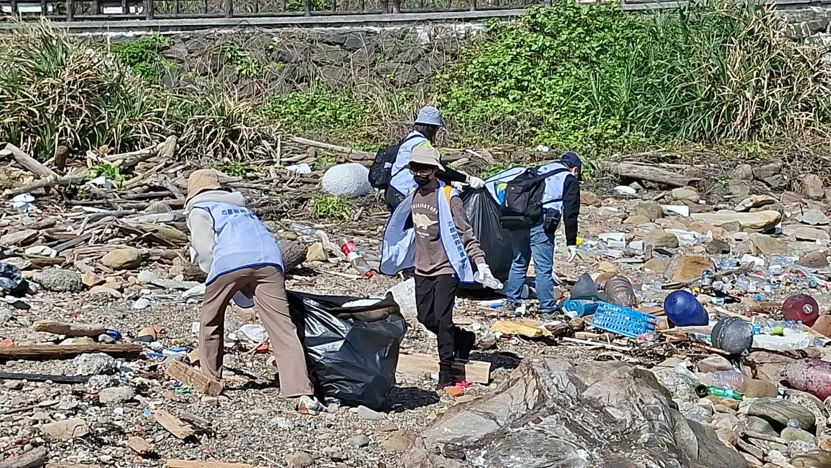 當天活動一早陽光炙熱,但志工們依然精神飽滿,帶著手套、垃圾袋與夾具,沿著海岸線仔細搜尋並撿拾各類海洋廢棄物。許多被海浪沖上岸的垃圾散落在礫石與沙灘之間,包括浮球、纜繩、保麗龍碎片、寶特瓶與各式塑膠製品。經過一個上午的努力,志工們共清理出近300公斤海洋垃圾,成果相當豐碩,也讓外木山海岸恢復更潔淨的面貌。