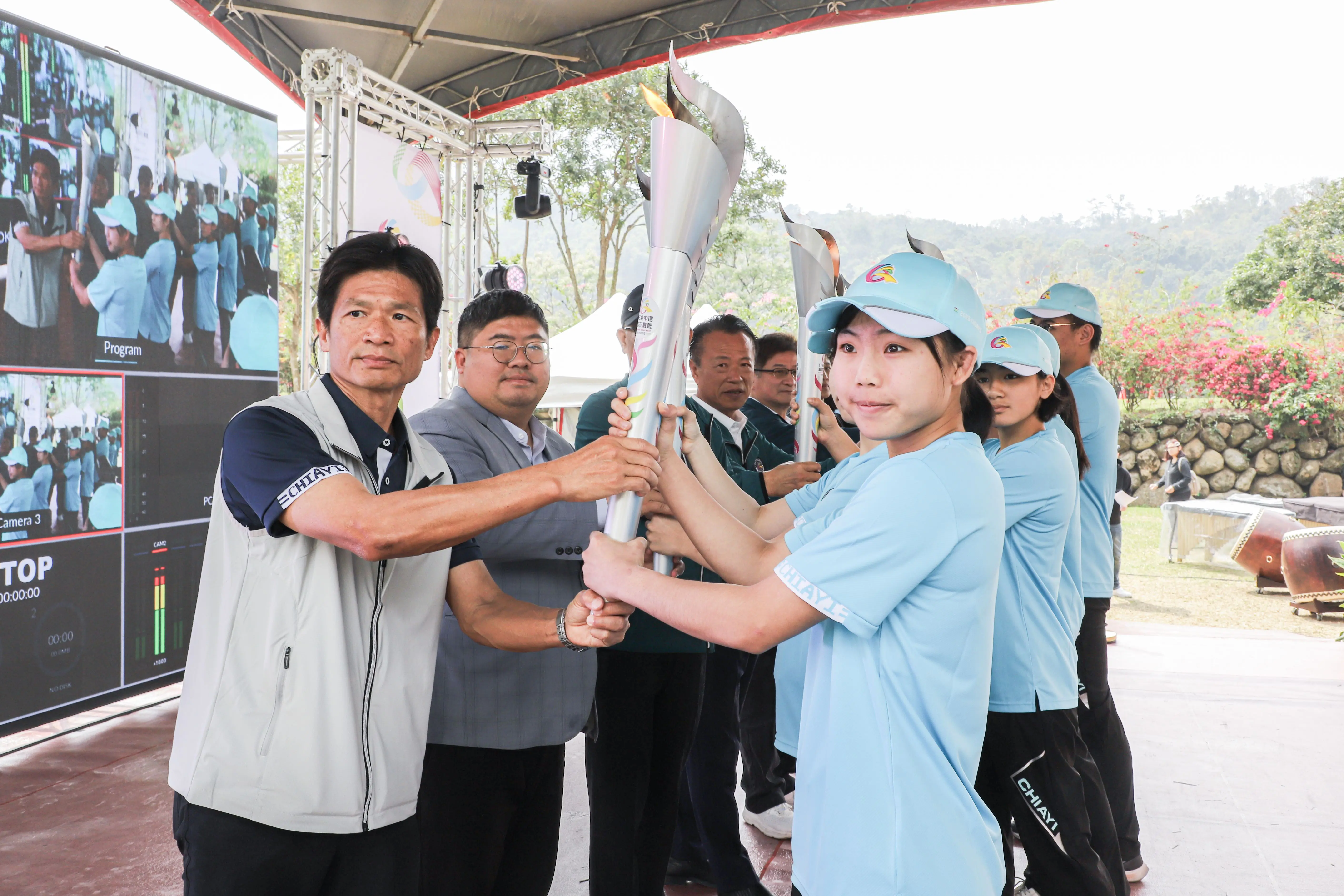 洪志昌說,嘉義縣政府結合鄒族天神取火神話,讓聖火結合祝福以及期待,想要以這次的slogan「超越在嘉義」,期勉所有選手在比賽中不斷超越,不斷突破自己的紀錄。