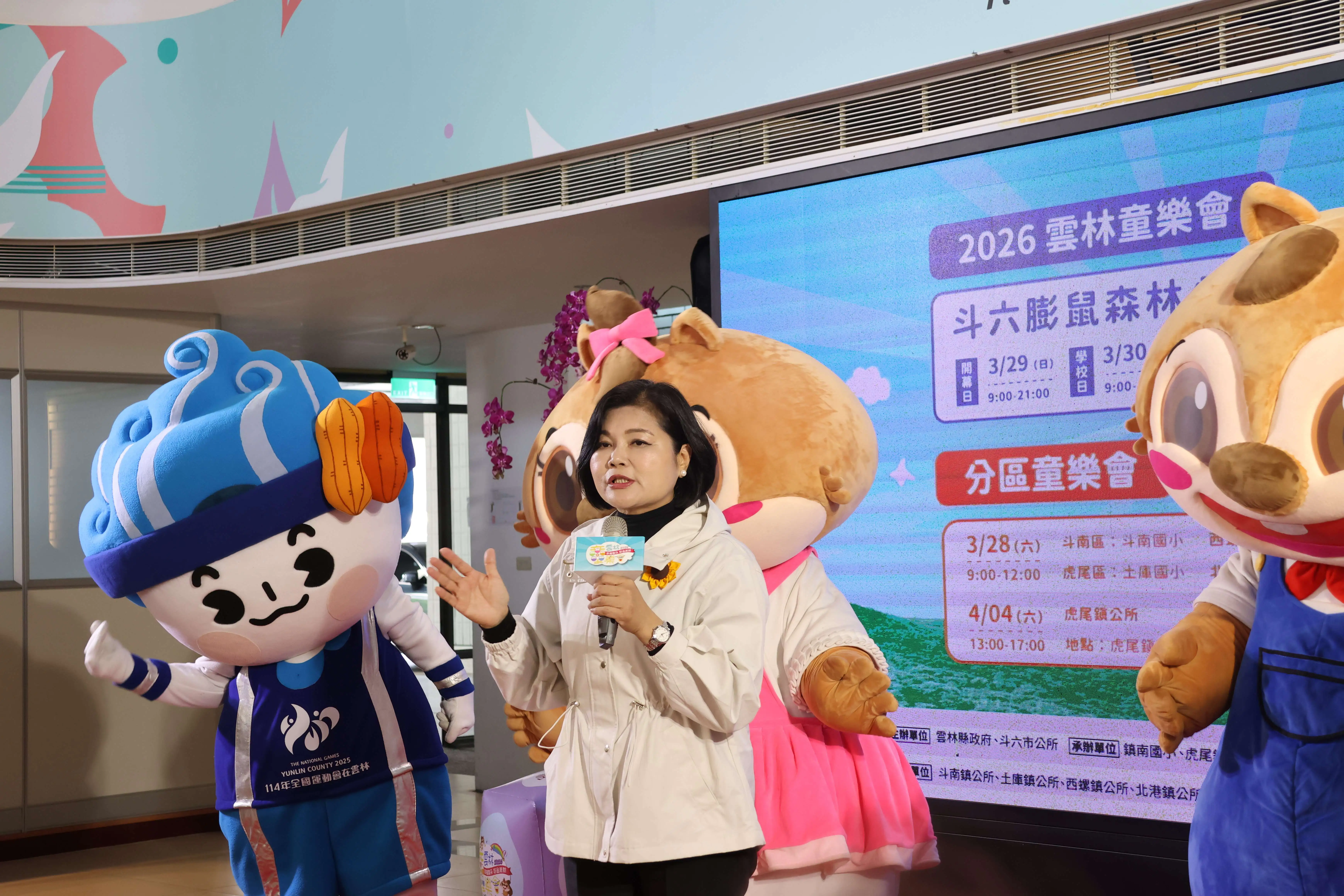 2026雲林童樂會將於3月28日至4月5日,一連9天在斗六等6區熱鬧登場。張麗善縣長今(16)日上午出席115年雲林童樂嘉年華記者會宣布,縣府規劃一系列趣味競賽、美食市集、精彩表演、大型遊具區及7萬份精緻禮物,將雲林打造成歡樂兒童樂園,邀請家長帶著孩子們一同參與這場歡樂的森林派對,嗨翻雲林!