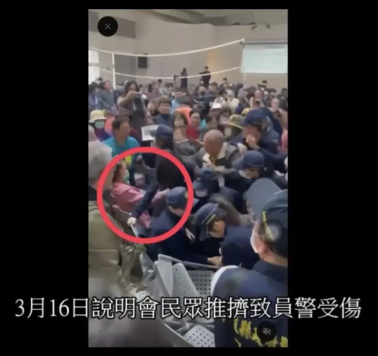 二、 會議開始時,環保團體即大聲鼓譟並丟撒茶葉及破壞現場桌椅,本局員警前往勸導時,民眾推擠並攻擊咬傷 1 名女警,該名女警被推擠頭部碰撞桌椅致輕微腦震盪,現仍住院中。本局為維護現場秩序,讓會議順利進行,即以現行犯逮捕施暴嫌犯,並於當日移送南投地檢署,經地檢署諭知新臺幣 5,000元交保及限制住居。