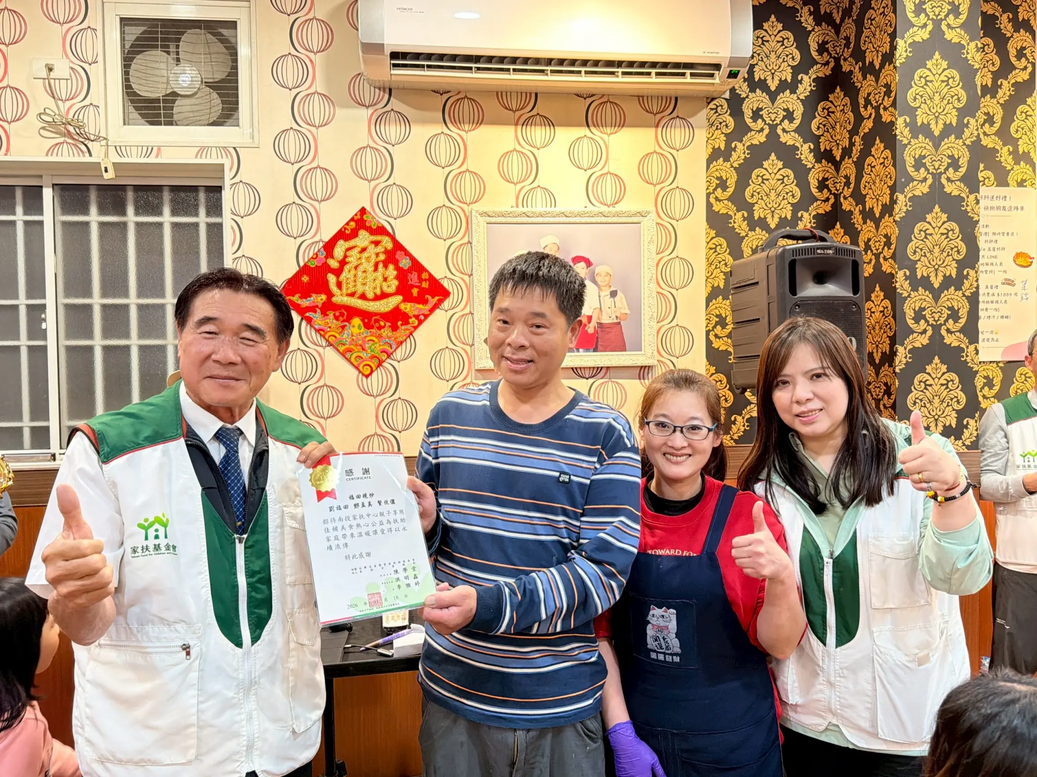此外,老闆賢伉儷號召許多善心人士與單位一起投入支持公益餐會,更加碼贊助兒少禮金,活動中特別準備紅包發放予家扶兒少,為孩子們帶來實質支持與暖心祝福,孩子們接過紅包時露出開心笑容,現場氣氛更加溫馨,不僅為活動增添喜悅,也讓愛與關懷在彼此之間流動。家長感動表示:「真的很謝謝善心人士的愛心幫忙,孩子拿到紅包非常開心,能夠一家人齊聚享用豐盛的餐點更是難能可貴,心裡感到十分溫暖,也更有力量繼續努力生活。」簡單的一句感謝,道出了家庭最真摯的心聲。