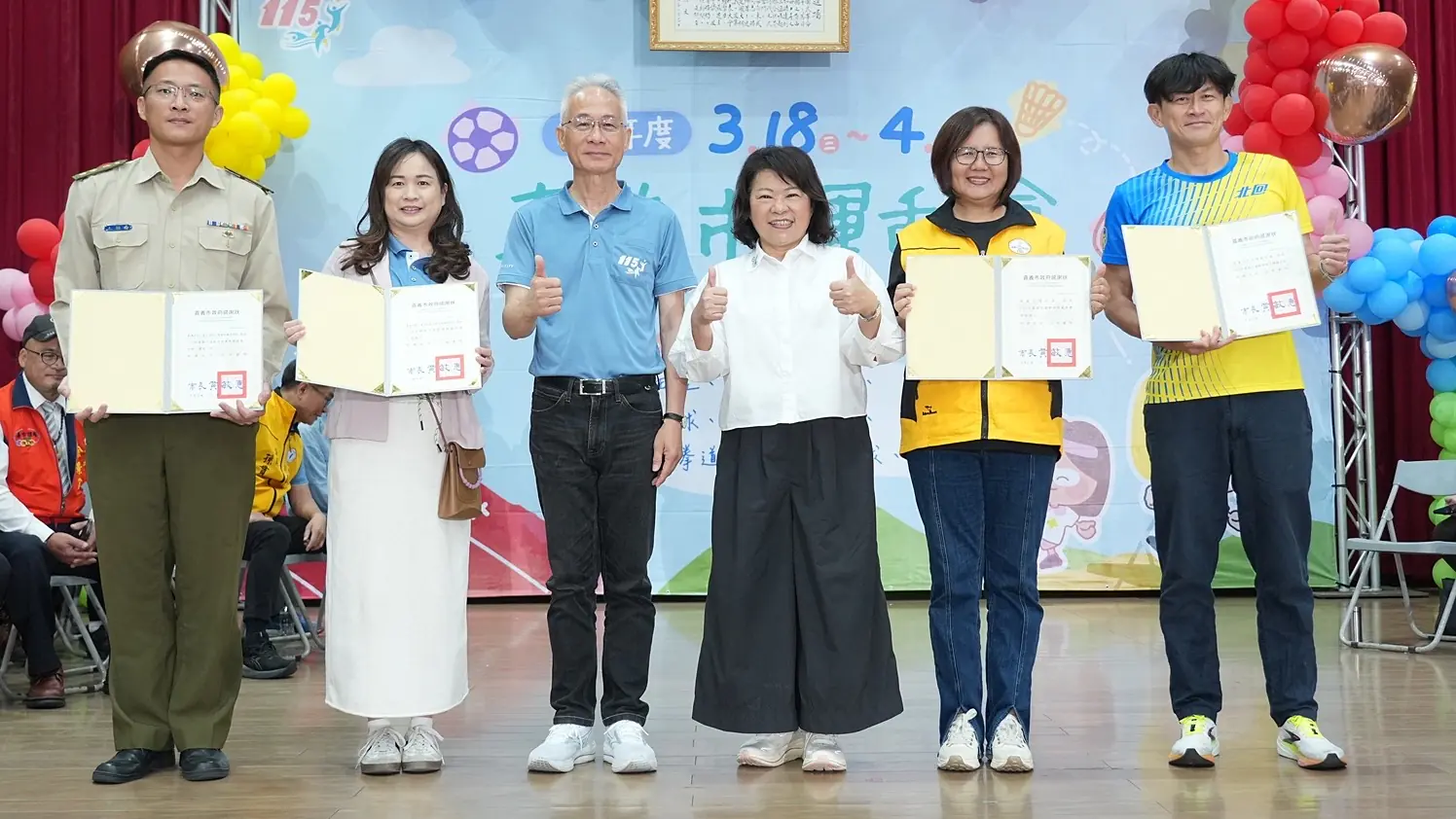 115年嘉義市運動會開幕典禮今(20)日在嘉義市東區體育館盛大舉行,黃敏惠市長特別到場勉勵所有選手都能在比賽中激發潛能,在運動競技場上締造佳績,也期盼透過運動會促進校際交流,培養健康體魄與運動家精神,讓運動成為市民生活的一部分。