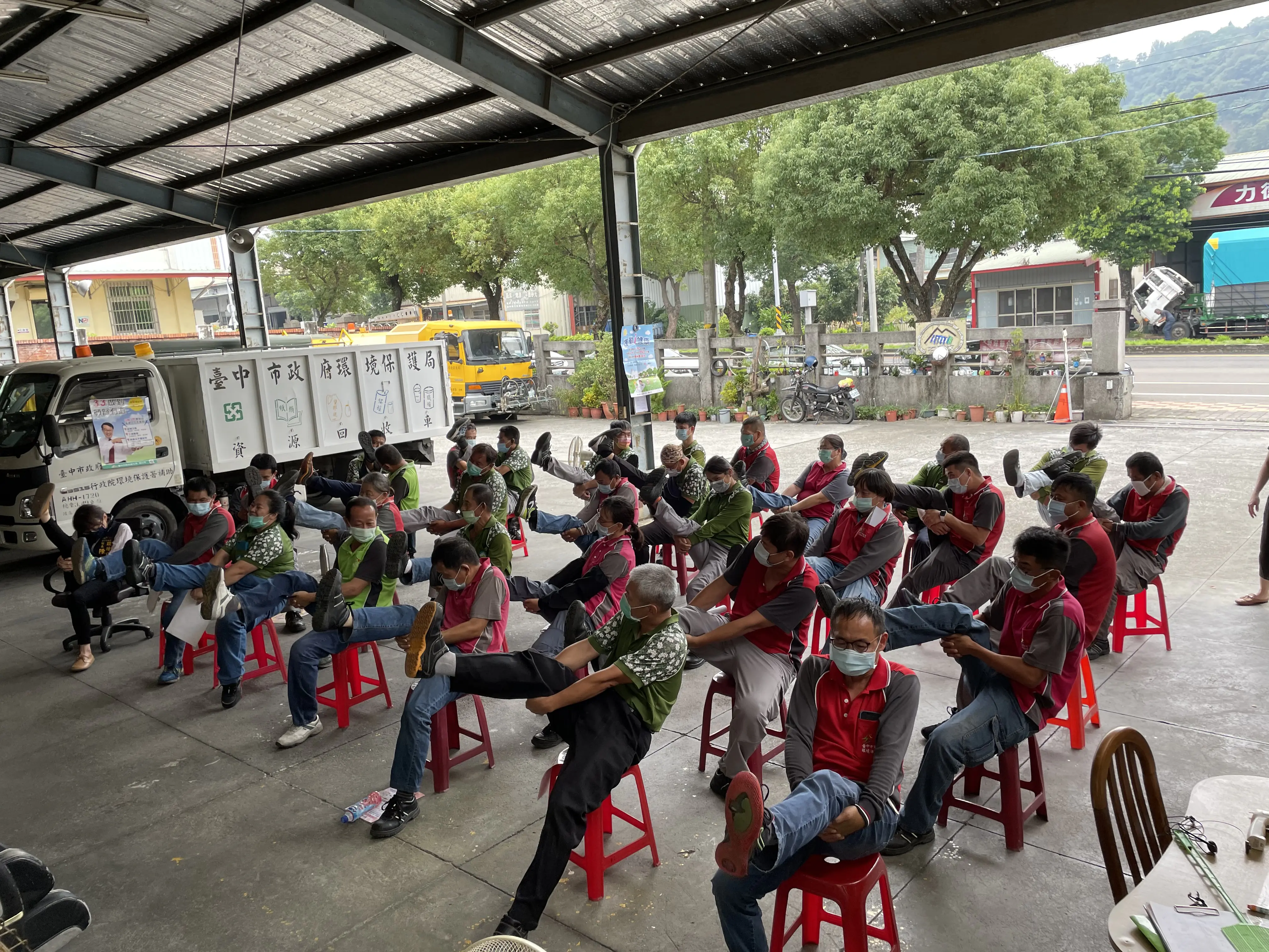 台中市政府環保局持續推動「清潔隊健康管理計畫」,結合健康促進活動與自主健康管理機制,透過勤前健康操、飲食熱量管理及每日自主量測體重等措施,協助清潔隊員養成健康自覺與管理習慣,隨時掌握身體狀況,守護第一線人員健康。