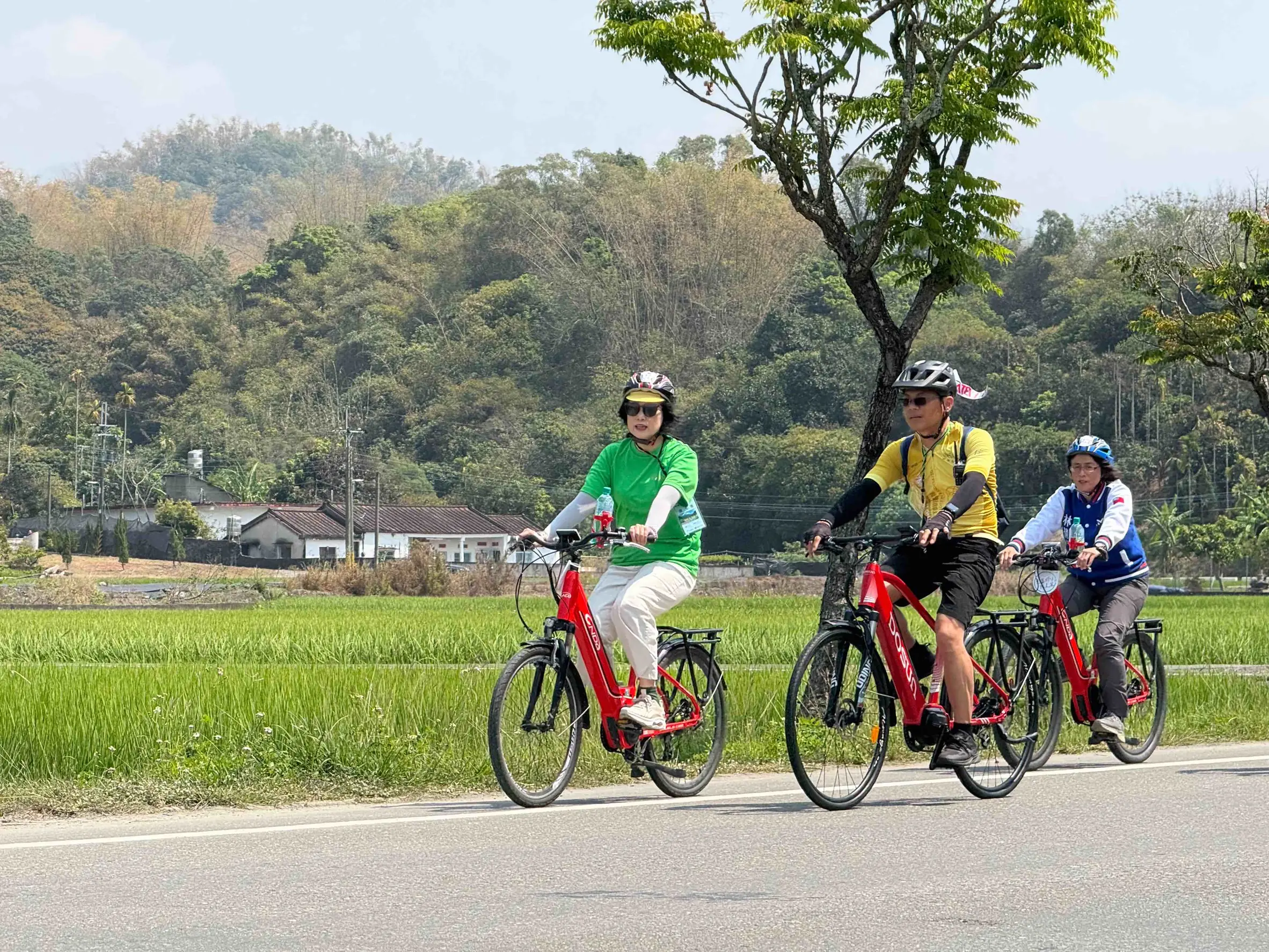 圖説:美濃迷人的桃花心木林與田園間一「騎」出發,象徵今(2026)年度全台自行車接力盛事正式揭幕。(交通部觀光署提供)
