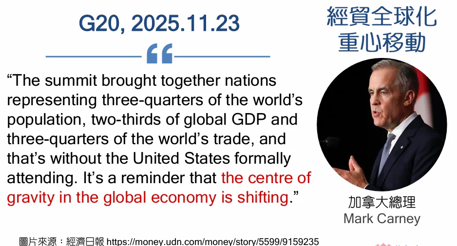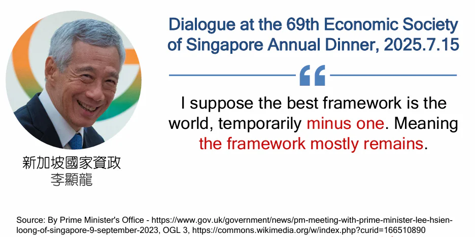 他表示:社會對美國政策的疑慮也使全球化發展面臨新一輪檢視,曾以全球化為主導的美國,如今自身行動卻削弱了全球化持續推進的動能,引發外界質疑全球化是否已經走到盡頭。他進一步指出,過去各界已習慣於經濟、文化、科技等多層次的全球連結,但在當前情勢下,許多人擔心全球化體系是否會徹底終結。